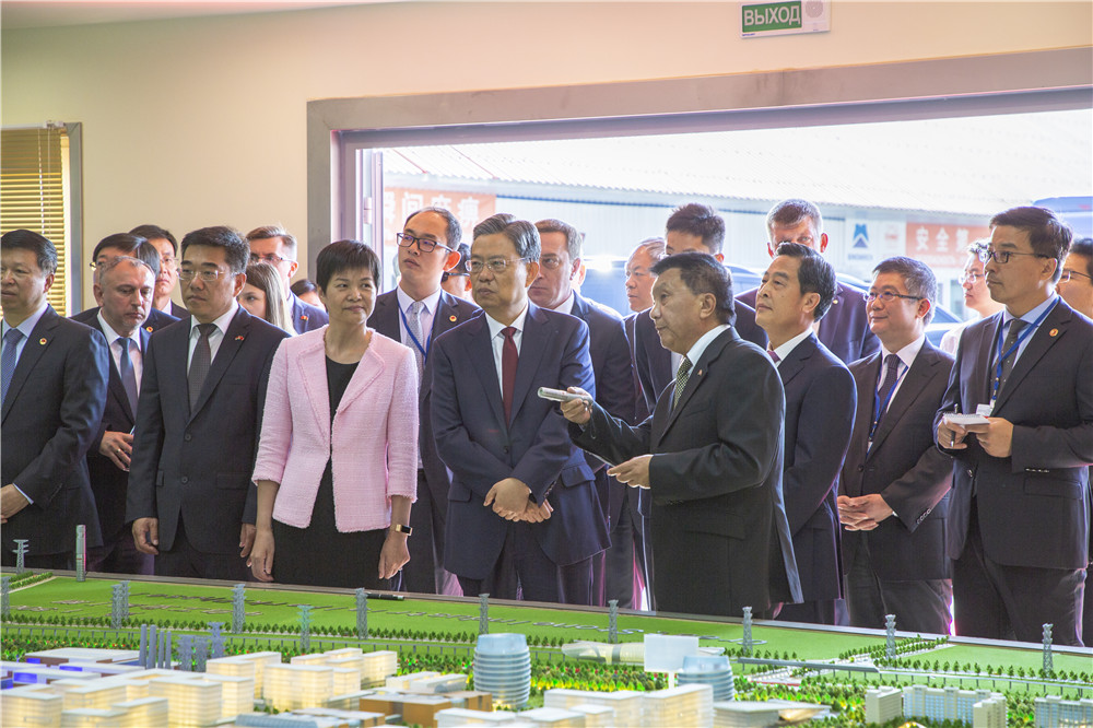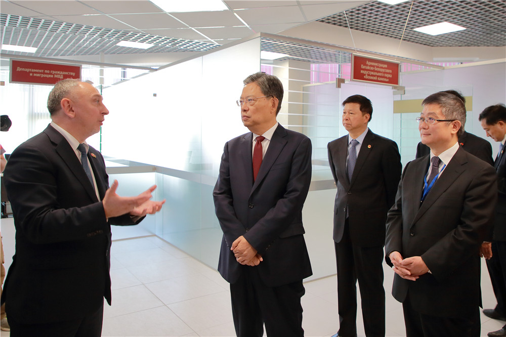趙樂際書記首先來到園區(qū)規(guī)劃館,聽取了中白工業(yè)園區(qū)管委會主任亞羅申科和中白工業(yè)園區(qū)開發(fā)公司首席執(zhí)行官胡政關于園區(qū)規(guī)劃和開發(fā)運營情況的匯報,在園區(qū)“一站式”服務大廳聽取了園區(qū)管委會的介紹和演示,在招商局集團投資建設的中白商貿(mào)物流園展示交易中心聽取了商貿(mào)物流園規(guī)劃建設和運營回報的匯報,參觀了白俄羅斯首個公共保稅物流倉、剛剛設立的海關站及中國援建110KV變電站等項目。在中白工業(yè)園中國投資企業(yè)展示大廳逐一了解了中國入園企業(yè)情況。趙樂際指出,要認真落實習近平總書記重要指示,堅持正確義利觀,堅持共商共建共享,堅持綠色發(fā)展、高質(zhì)量發(fā)展,打造成為絲綢之路經(jīng)濟帶上的標志性項目。