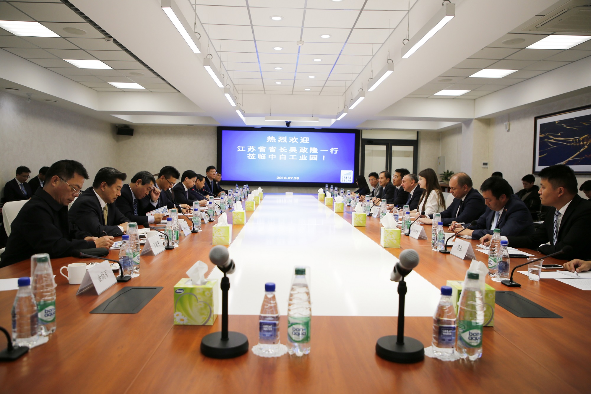 2018年9月28日下午,江蘇省長(zhǎng)吳政隆一行考察中白工業(yè)園。中白工業(yè)園區(qū)管委會(huì)主任亞羅申科,園區(qū)開(kāi)發(fā)股份有限公司總經(jīng)理李海欣陪同考察。