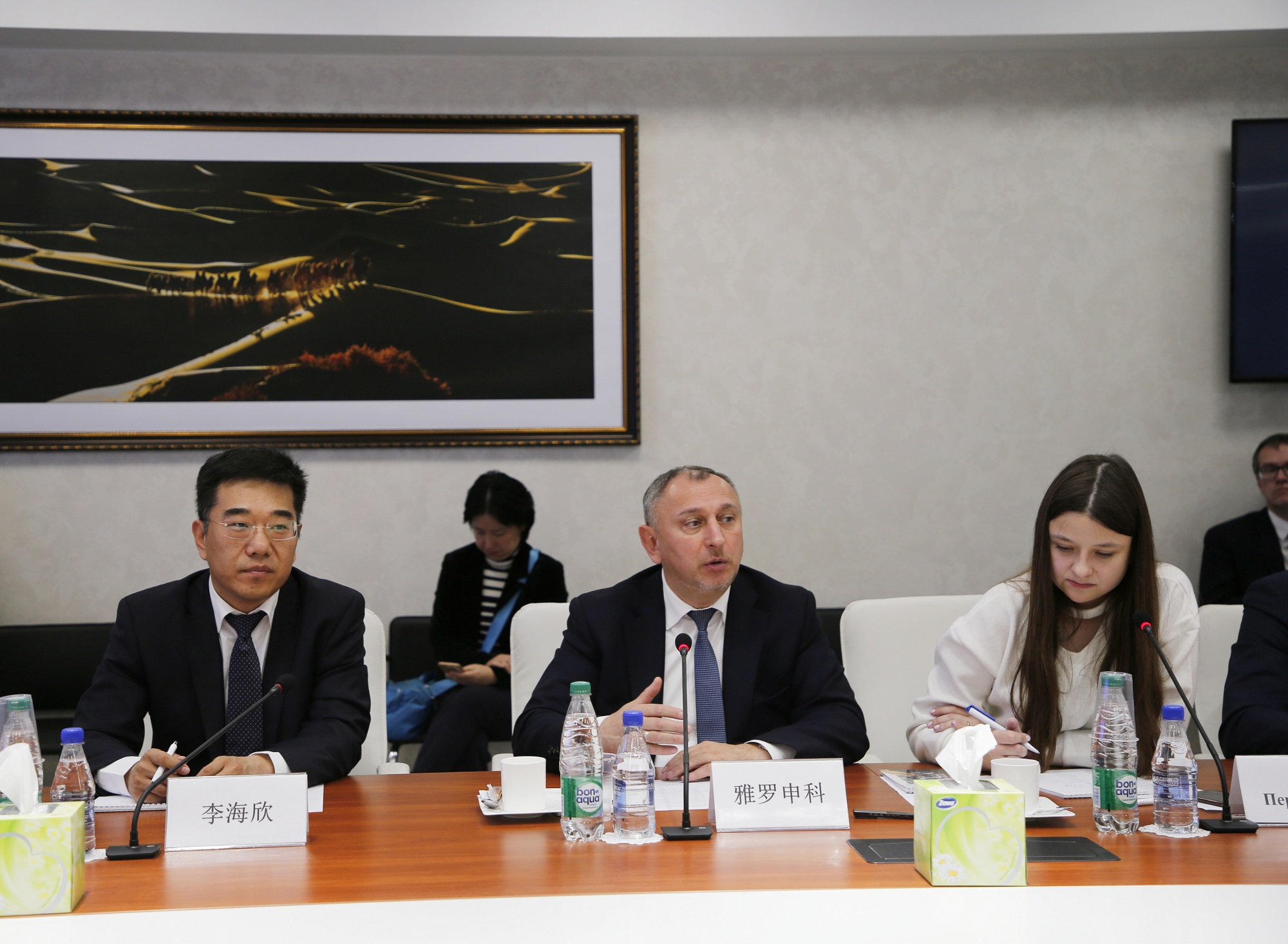 在隨后舉行的座談會(huì)上,李海欣對(duì)白俄羅斯地理位置,投資環(huán)境及園區(qū)管理架構(gòu)進(jìn)行了詳細(xì)解說(shuō)。亞羅申科表示,中白工業(yè)園與中國(guó)蘇州工業(yè)園保持著長(zhǎng)期友好的合作關(guān)系,園區(qū)建設(shè)借鑒了蘇州工業(yè)園的建園經(jīng)驗(yàn),設(shè)立了“一站式”服務(wù)和海關(guān)保稅倉(cāng)等,希望江蘇企業(yè)團(tuán)能來(lái)園區(qū)考察、投資。吳政隆向亞羅申科和李海欣的熱情接待表示感謝,他表示,此次訪問(wèn)白俄羅斯旨在落實(shí)兩國(guó)元首“推進(jìn)地方間友好合作交流”的共識(shí),江蘇省與白俄羅斯莫吉廖夫州有多年友好合作關(guān)系,我們有義務(wù)、有責(zé)任把這種合作關(guān)系變成地方間合作關(guān)系的典范。同時(shí),他強(qiáng)調(diào),中白工業(yè)園是中白兩國(guó)間的合作項(xiàng)目,是兩國(guó)元首親自推動(dòng)的項(xiàng)目,希望江蘇省企業(yè)可以借此機(jī)會(huì)“走出去”,投入到“一帶一路”建設(shè)當(dāng)中來(lái),共同推動(dòng)中白工業(yè)園健康、有序地發(fā)展。