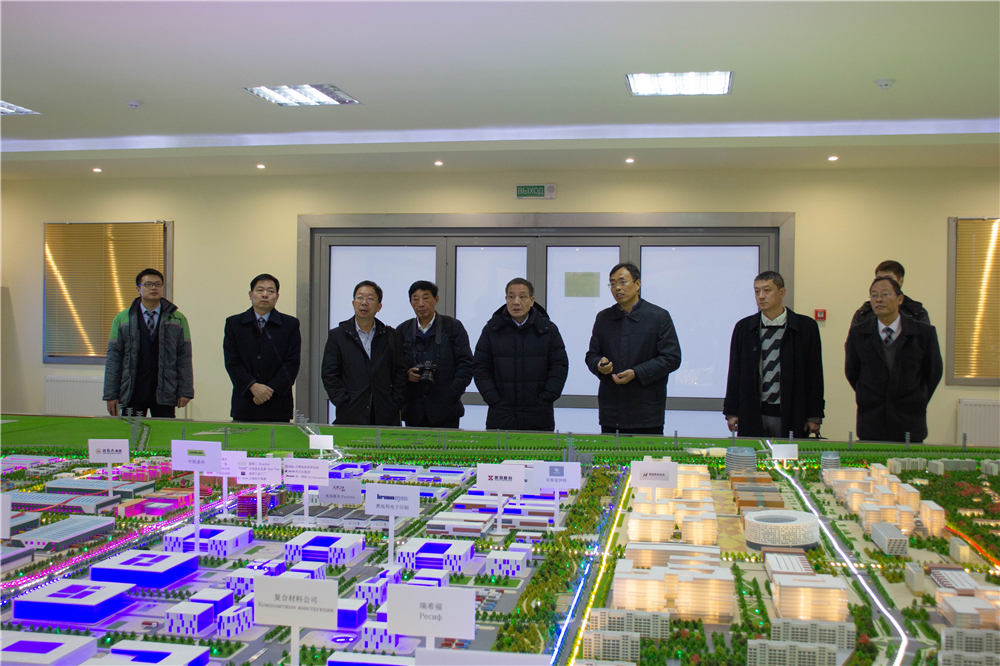 在規(guī)劃館內(nèi),徐保民向楊維剛一行介紹了園區(qū)發(fā)展歷史、基礎(chǔ)設(shè)施建設(shè)、園區(qū)管理架構(gòu)以及白俄羅斯、園區(qū)的地理優(yōu)勢等概況,并簡單闡述了園區(qū)產(chǎn)業(yè)方向和第166號總統(tǒng)令向居民企業(yè)所提供的優(yōu)惠政策。