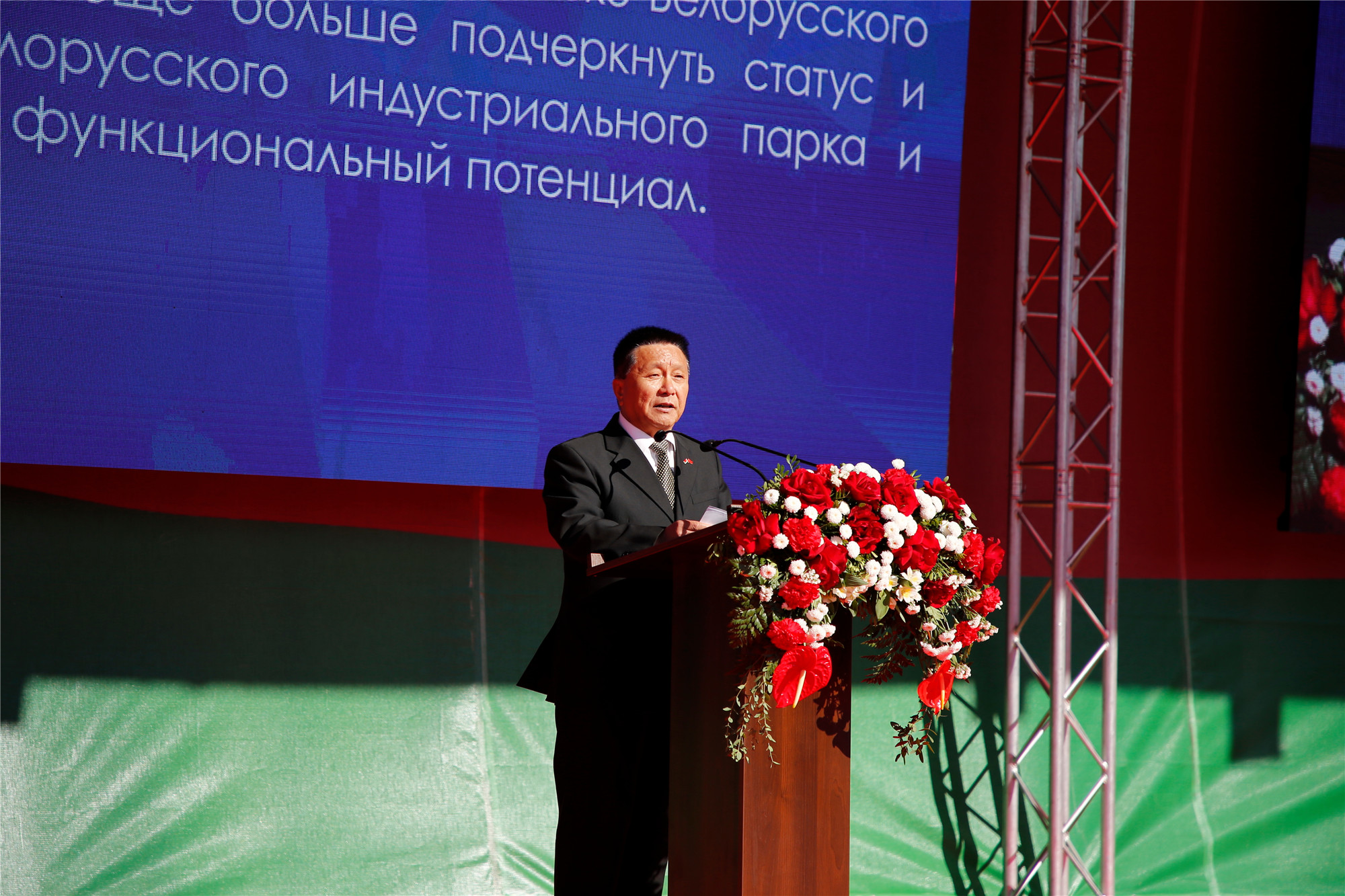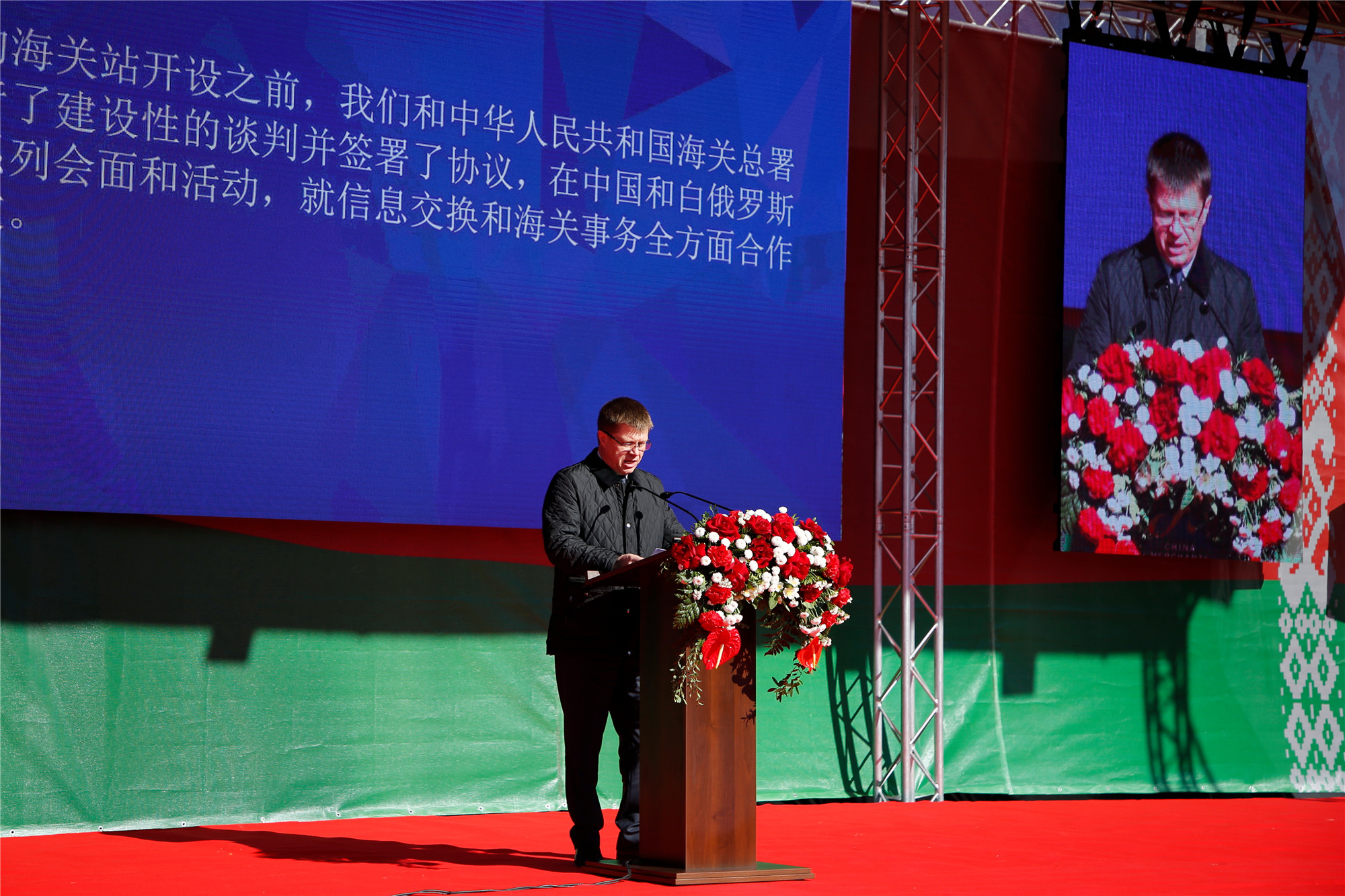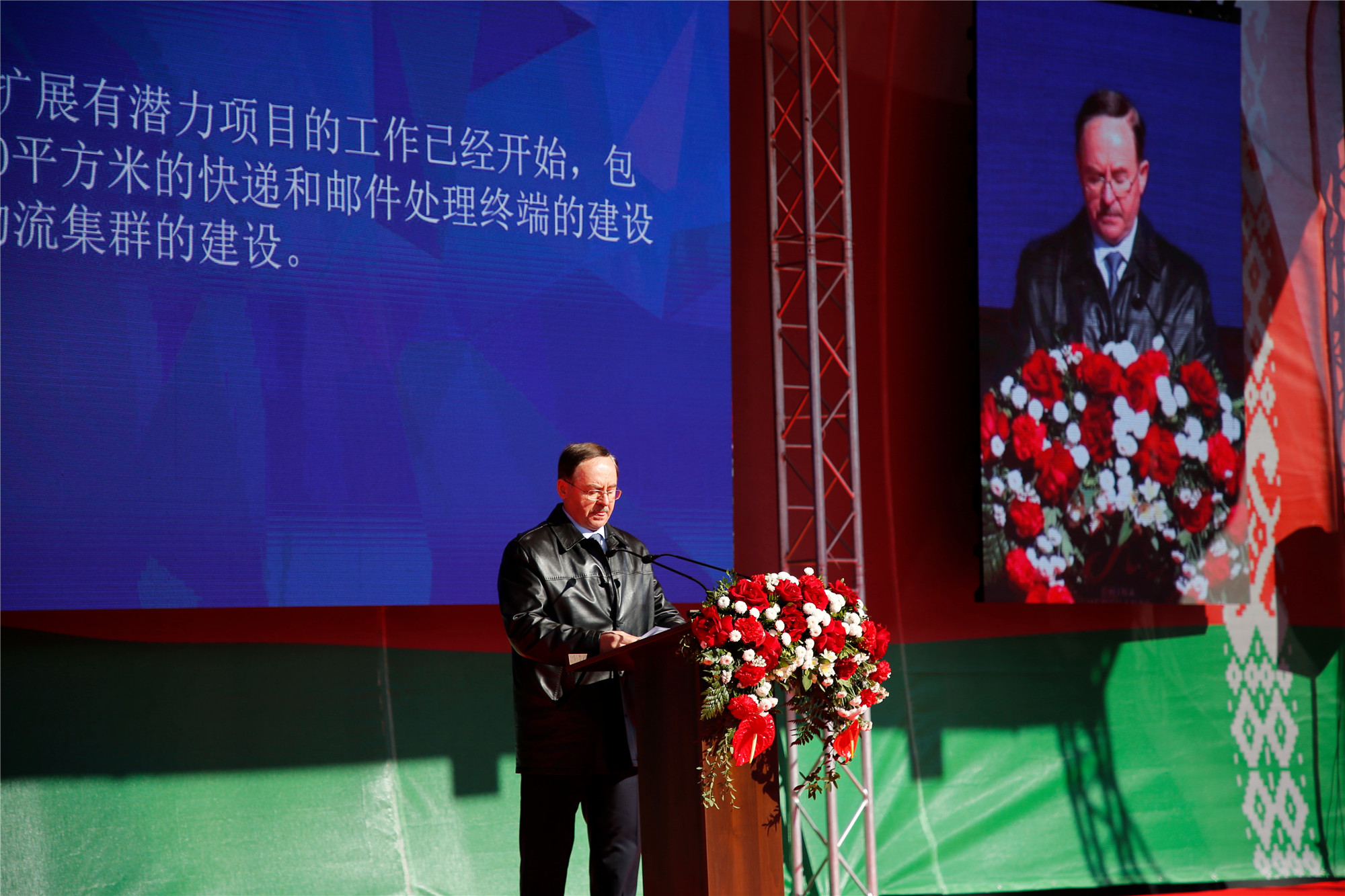 開站儀式上,舍伊曼代表白俄羅斯共和國總統(tǒng)事務(wù)局對“巨石”海關(guān)站順利開站表示祝賀并發(fā)表致辭,海關(guān)站的入駐填補(bǔ)了園區(qū)的清關(guān)空白,此舉將為白俄羅斯及園區(qū)商品進(jìn)入世界市場提供便捷、高效的單據(jù)辦理保障,并為“一帶一路”倡議注入新的活力。最后,舍伊曼向中國伙伴致以國慶節(jié)的問候,祝愿中華人民共和國繁榮昌盛,并?!熬奘鼻巴緹o量。