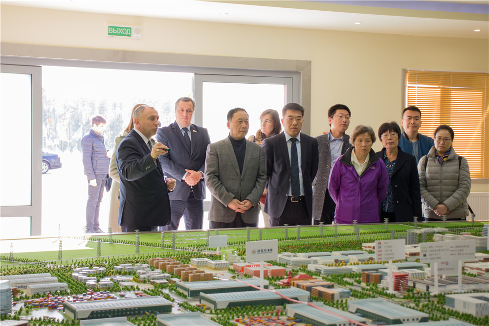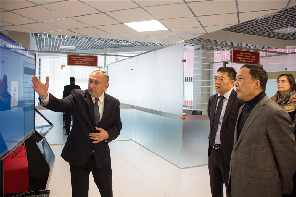 在規(guī)劃館內(nèi),亞羅申科向任賢良介紹了園區(qū)發(fā)展歷程和優(yōu)惠政策等內(nèi)容,李海欣向任賢良匯報了園區(qū)招商引資、基礎(chǔ)設(shè)施、區(qū)位優(yōu)勢等情況,并闡述了園區(qū)未來的發(fā)展規(guī)劃。在 “一站式”服務(wù)大廳,亞羅申科向任賢良一行演示了便捷的投資者服務(wù)理念和方式。