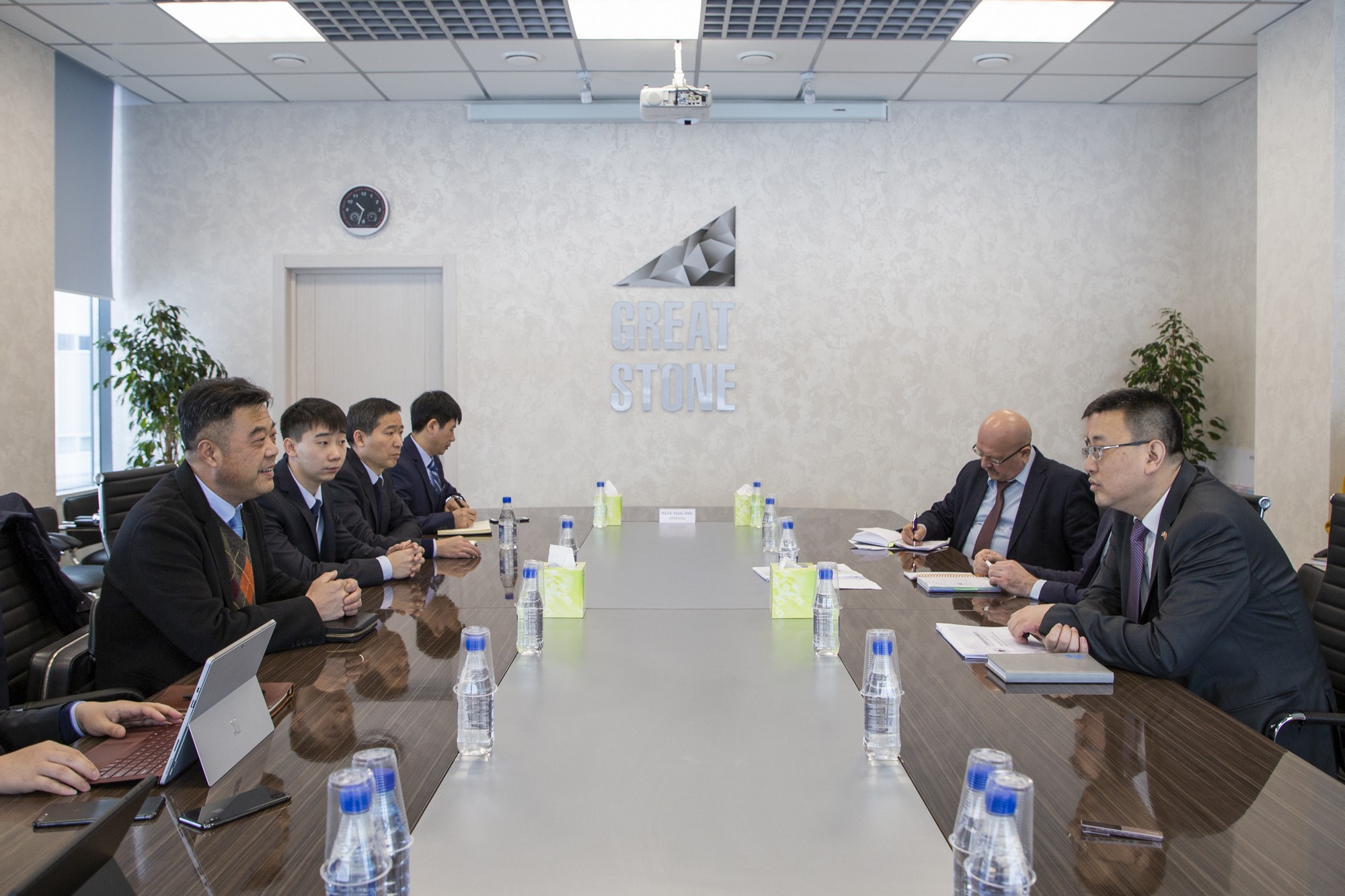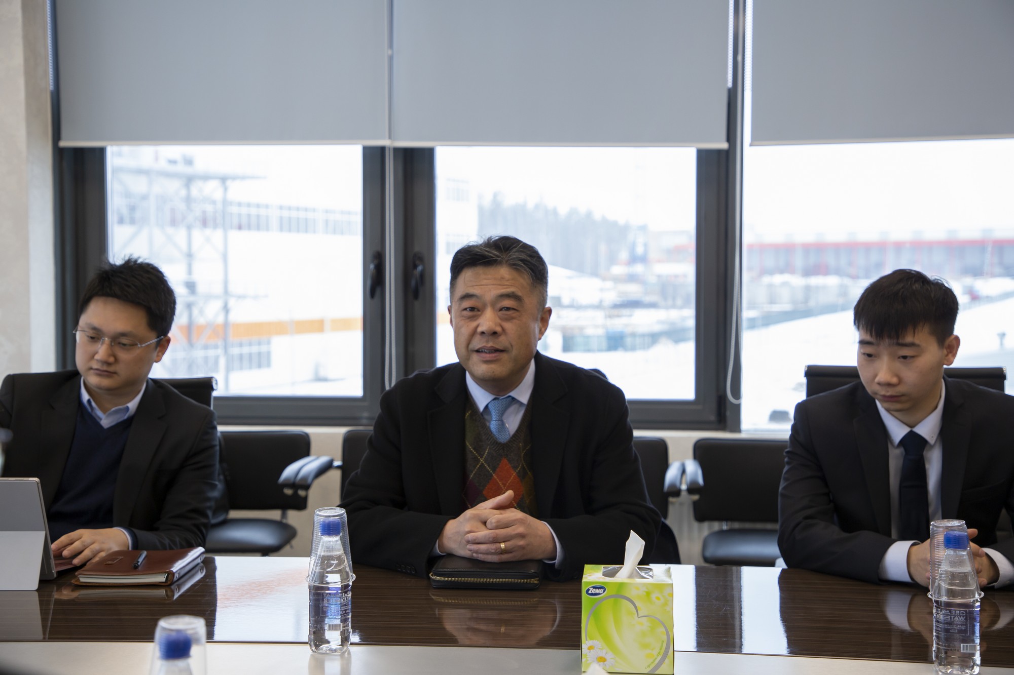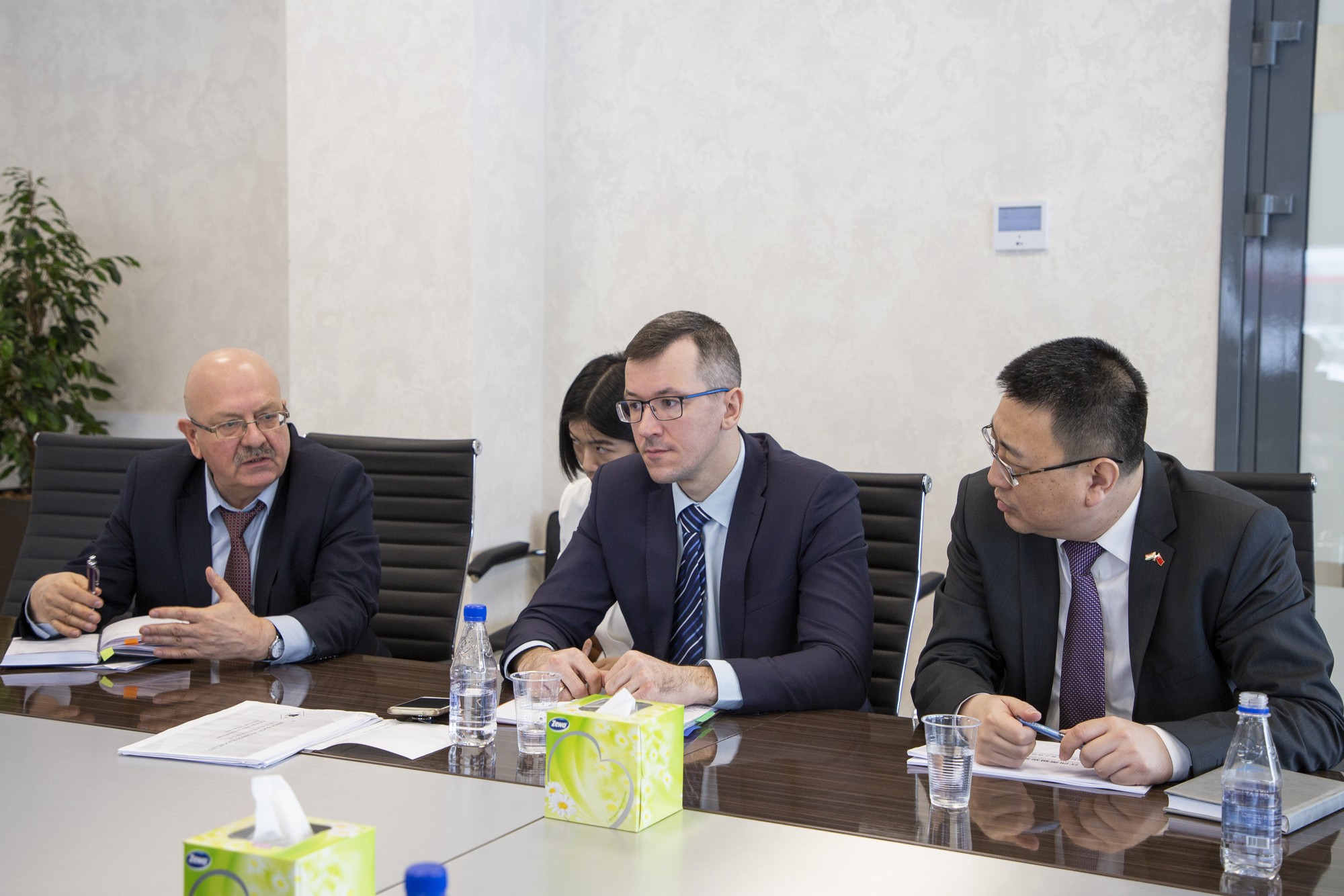 2019年2月26日上午,中白工業(yè)園區(qū)開(kāi)發(fā)公司副總經(jīng)理任飛,管委會(huì)投資者和入園企業(yè)服務(wù)部經(jīng)理普列斯尼亞科夫在園區(qū)會(huì)見(jiàn)江西黑貓?zhí)亢诠煞萦邢薰究偨?jīng)理魏明。