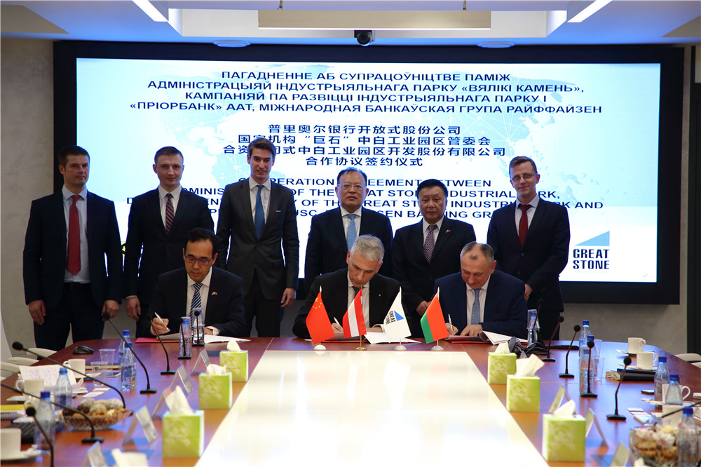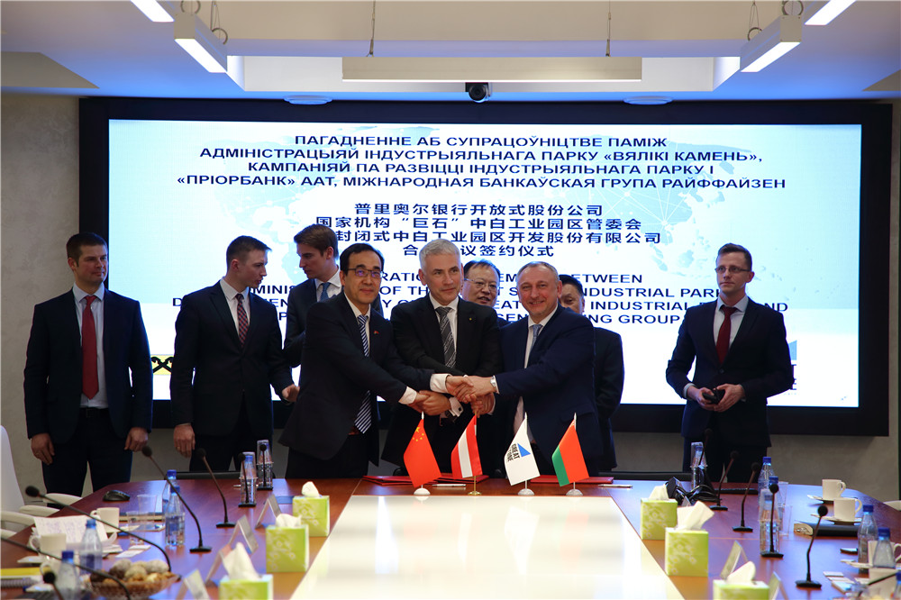 2019年4月4日下午,園區(qū)管委會(huì)、開(kāi)發(fā)公司與白俄羅斯Prior銀行簽署合作備忘錄。管委會(huì)主任亞羅申科,開(kāi)發(fā)公司首席執(zhí)行官胡政,Prior銀行副董事長(zhǎng)馬秋季金·瓦季姆,奧地利奧合國(guó)際銀行中國(guó)業(yè)務(wù)部主管周如東等領(lǐng)導(dǎo)出席了簽約儀式。亞羅申科、開(kāi)發(fā)公司副總經(jīng)理白明,馬秋季金·瓦季姆分別代表三方簽署了合作儀式。