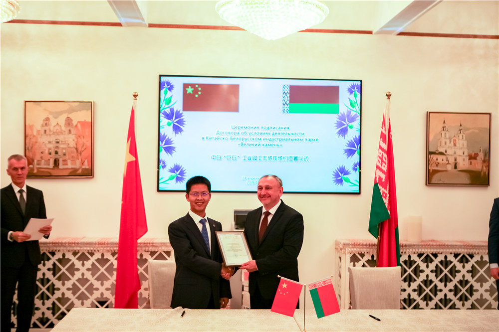 簽約儀式由白俄羅斯駐華使館參贊拉普科主持。白俄羅斯經(jīng)濟(jì)部長(zhǎng)克魯托伊、衛(wèi)生部長(zhǎng)馬拉什科、中白工業(yè)園管委會(huì)主任亞羅申科,中國(guó)商務(wù)部歐亞司副司長(zhǎng)劉雪松,中白工業(yè)園區(qū)開(kāi)發(fā)股份有限公司CEO胡政、副總經(jīng)理任飛,中白產(chǎn)業(yè)基金總經(jīng)理?xiàng)詈?、?zhí)行董事鄭曦,中白企業(yè)代表及媒體等50余嘉賓參加了此次簽約儀式活動(dòng)。(招商引資中國(guó)部 文/圖)