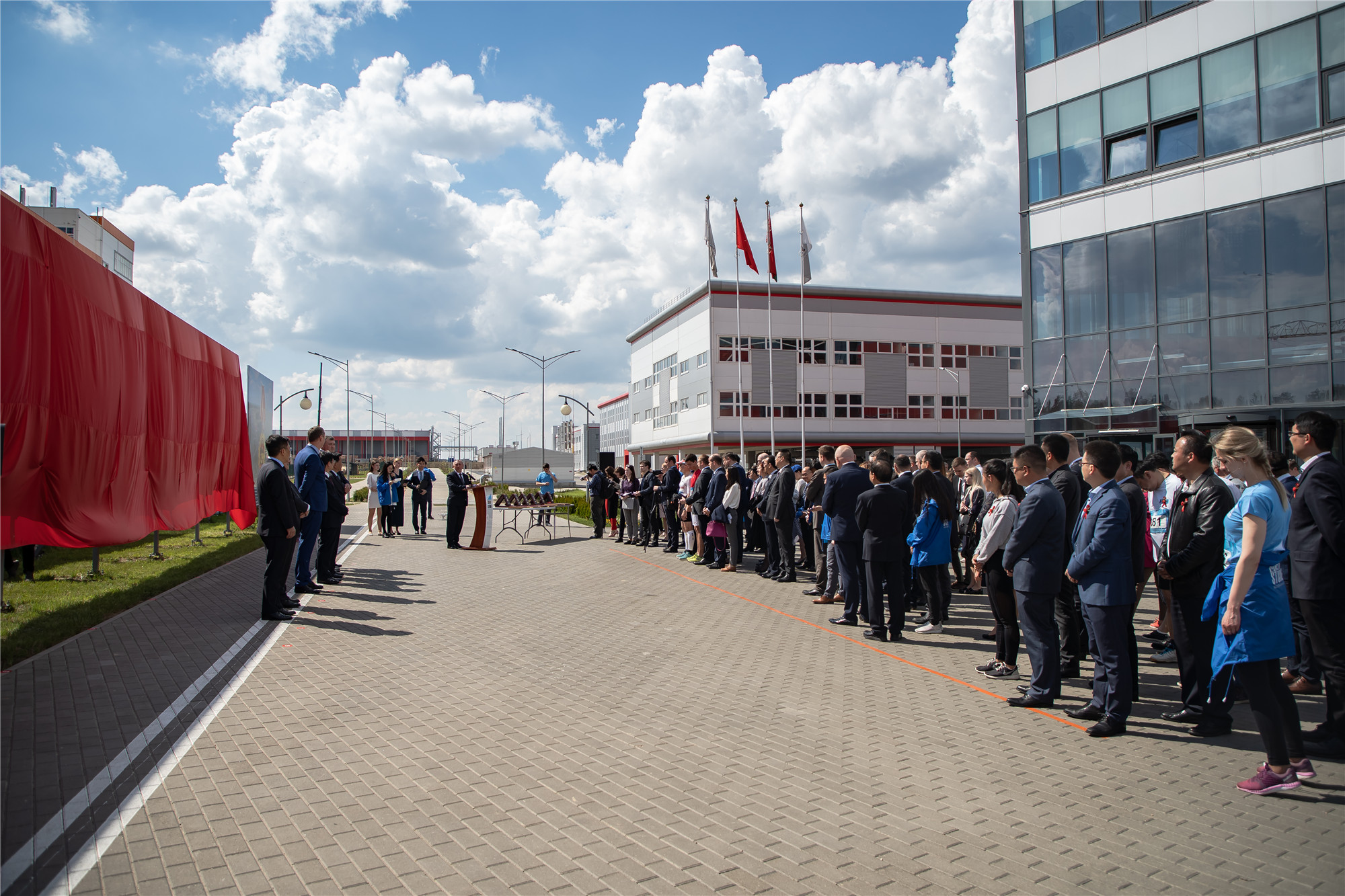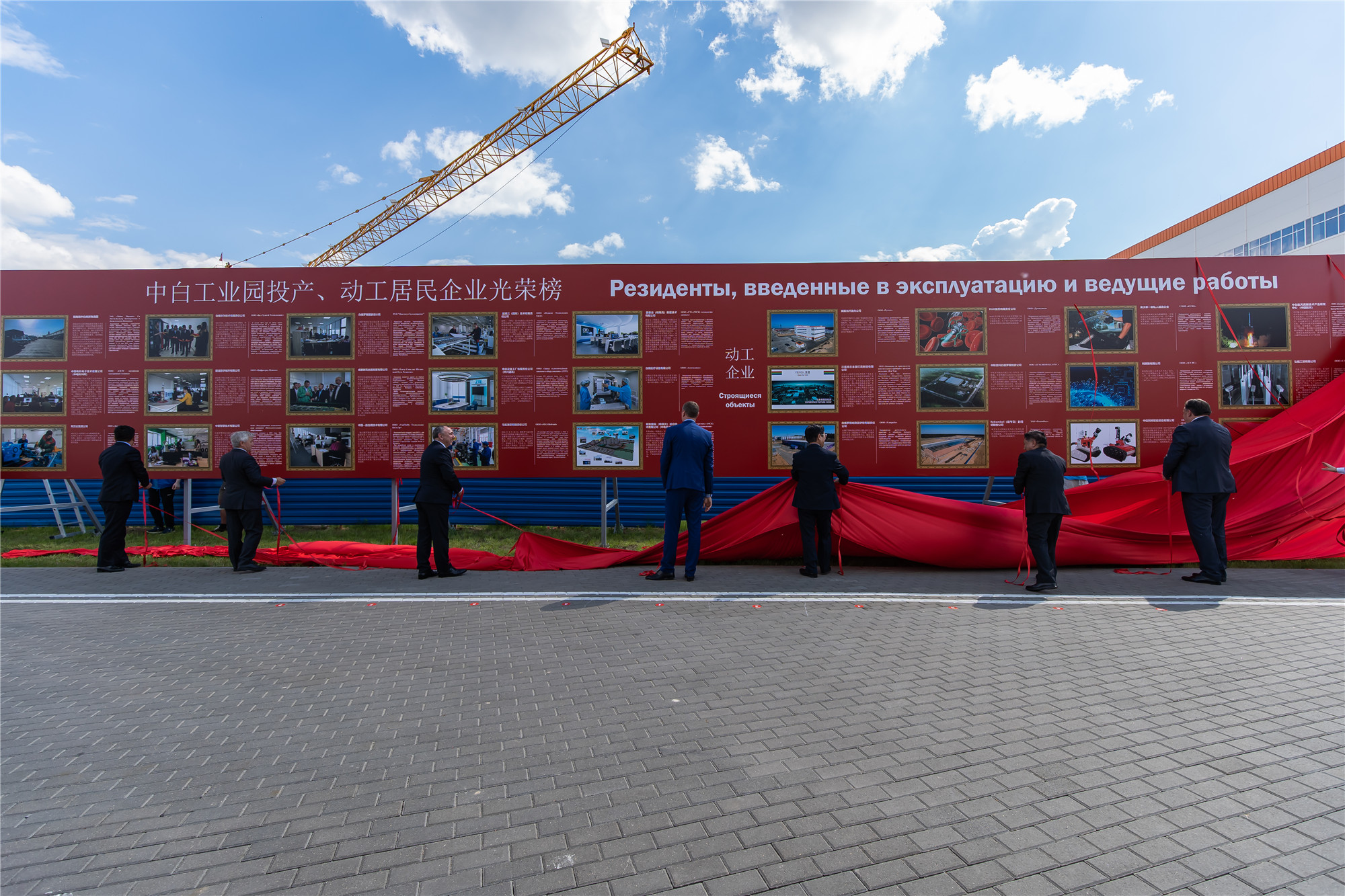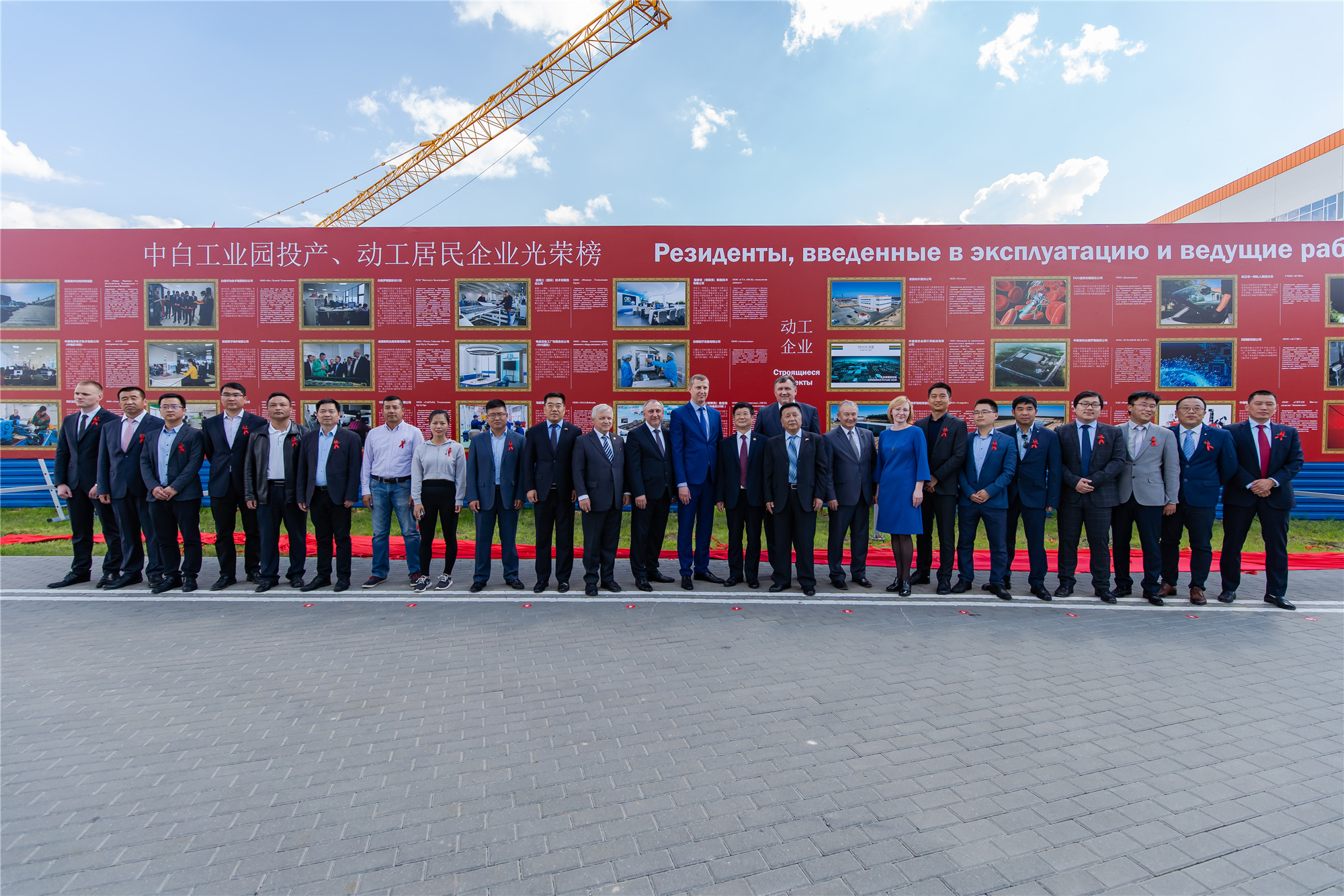2019年5月13日下午,中白工業(yè)園投產、動工居民企業(yè)光榮榜揭牌儀式在園區(qū)辦公樓前舉行,白俄羅斯經濟部部長克魯托伊、中國駐白俄羅斯特命全權大使崔啟明、園區(qū)管委會主任亞羅申科、開發(fā)公司CEO胡政、開發(fā)公司總經理李海欣、白俄羅斯科學院第一副主席齊日克、白俄羅斯國立大學孔子學院院長托濟克、斯莫列維奇區(qū)執(zhí)委會主席扎戈爾采夫出席本次活動,并共同為光榮榜揭牌。