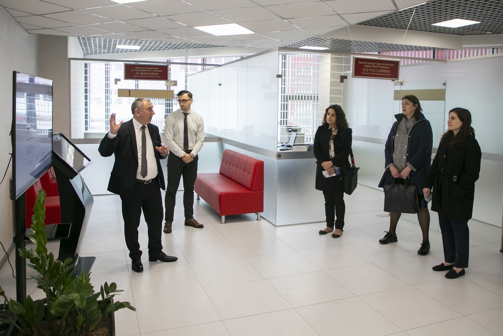 2019年5月14日上午,世界銀行私營部門專家克龍韋爾爾和投資顧問薩瓦克德考察中白工業(yè)園,園區(qū)管委會主任亞羅申科和開發(fā)公司副總經(jīng)理維杰霍夫斯基陪同考察。
