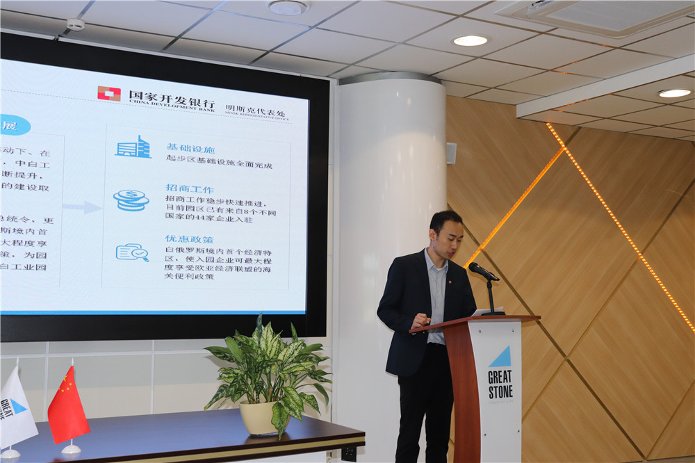 中國國家開發(fā)銀行、白俄羅斯銀行、法蘭薩銀行、富安銀行以及園區(qū)部分居民企業(yè)等參加了此次交流會。