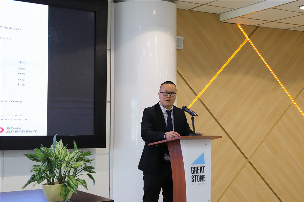 會議在園區(qū)管委會第一副主任列謝諾克的致辭中開始。會上,各銀行參會代表紛紛向居民企業(yè)介紹了各自銀行的主要金融服務(wù)、融資優(yōu)勢以及為園區(qū)居民企業(yè)所提供的專項金融業(yè)務(wù),尤其是人民幣融資等方面的服務(wù)。隨后,銀行代表們就居民企業(yè)所提的相關(guān)問題進行了詳細解答。