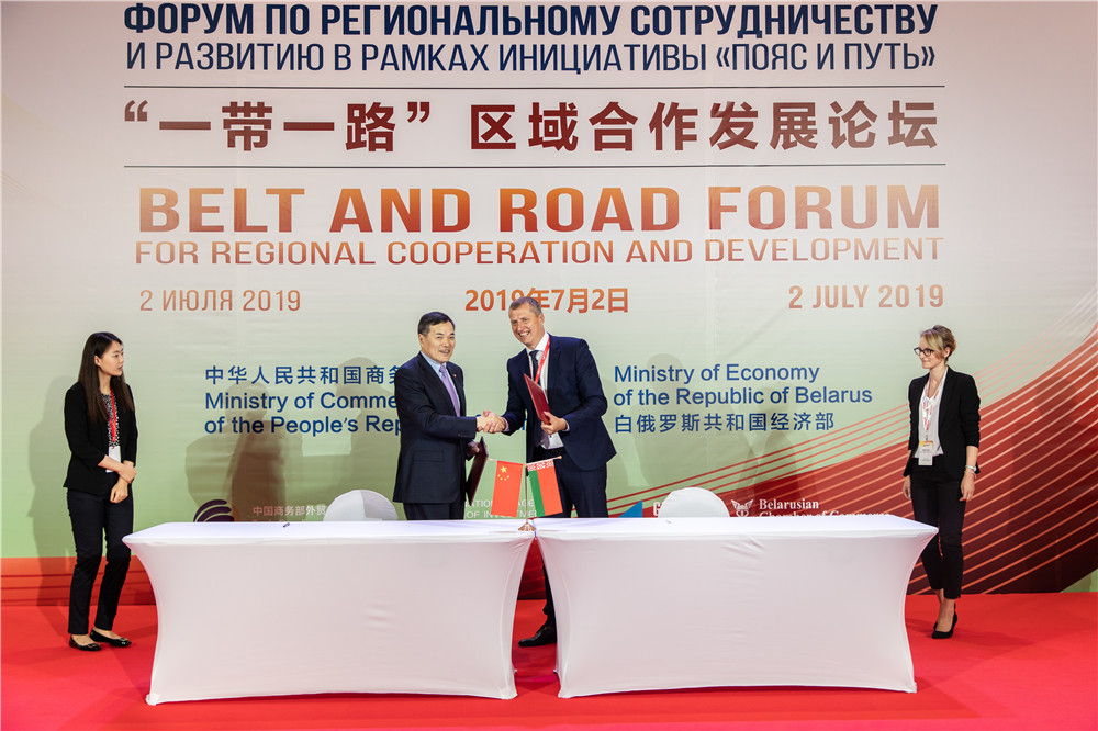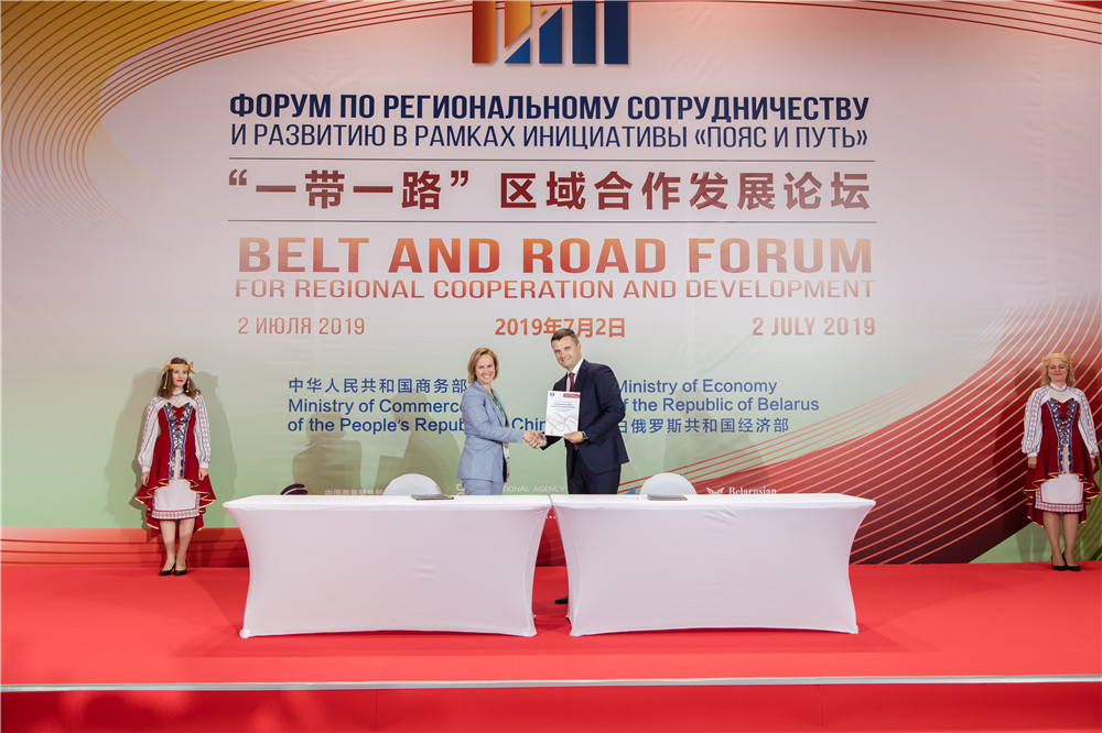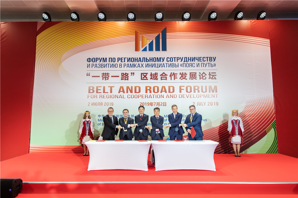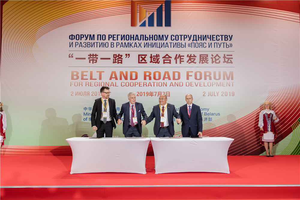 2019年7月2日,“一帶一路”區(qū)域合作發(fā)展論壇在中白工業(yè)園舉辦。在此期間,簽署相關合作協(xié)議。