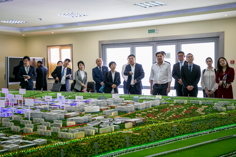 在沙盤展示中心,李海欣總經(jīng)理向代表團(tuán)介紹了園區(qū)優(yōu)惠政策以及基礎(chǔ)設(shè)施建設(shè)、招商引資、開發(fā)運(yùn)營(yíng)情況。