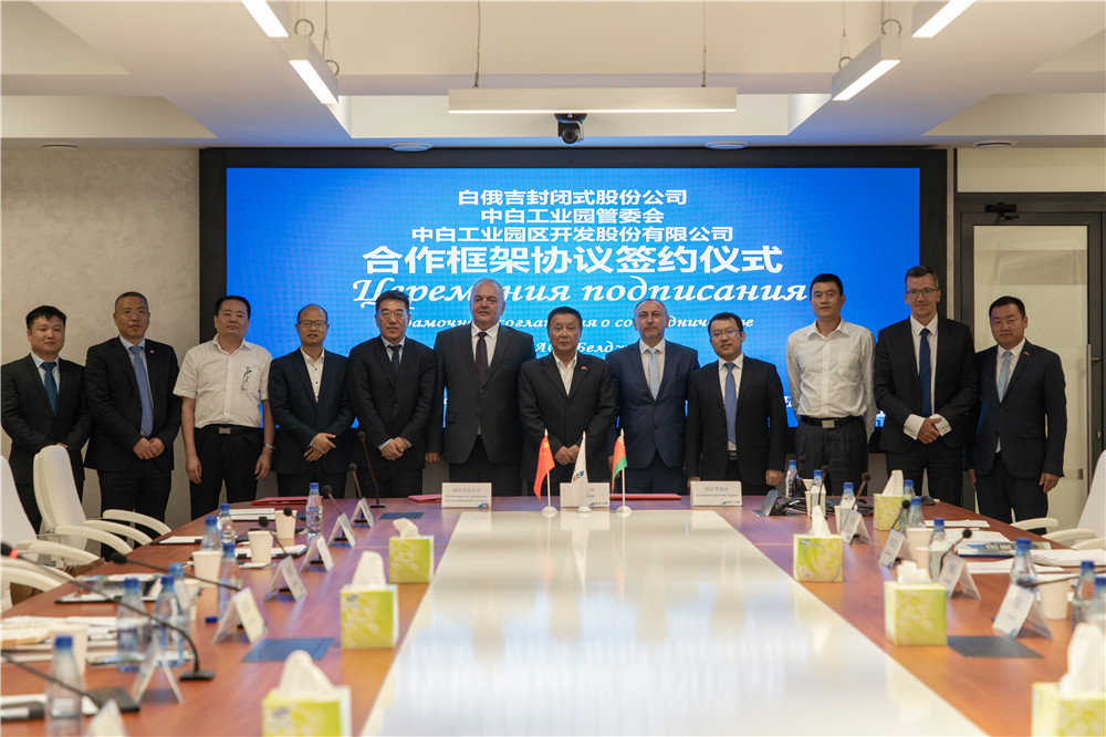 2019年8月21日,中白工業(yè)園區(qū)管委會(huì)、開(kāi)發(fā)公司與白俄羅斯吉利股份公司在園區(qū)舉行三方合作框架協(xié)議簽約儀式。白俄羅斯工業(yè)部第一副部長(zhǎng)兼白俄羅斯吉利股份公司(以下簡(jiǎn)稱“白俄吉利公司”)總經(jīng)理斯維杰爾斯基,園區(qū)管委會(huì)主任亞羅申科、吉利集團(tuán)經(jīng)營(yíng)管理高級(jí)總監(jiān)淦家閱、園區(qū)開(kāi)發(fā)公司CEO胡政、總經(jīng)理李海欣出席儀式。