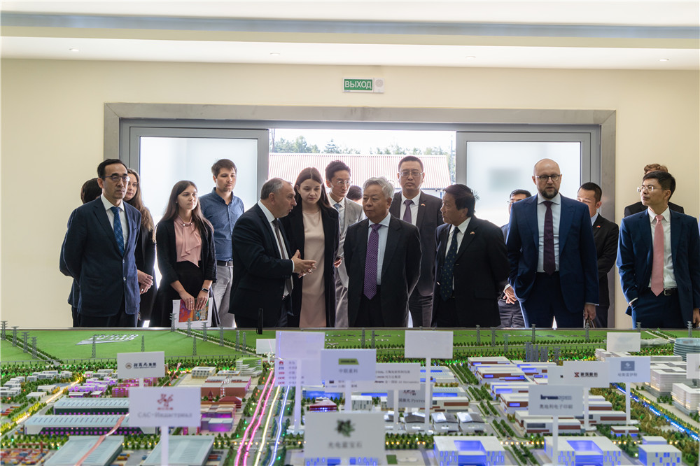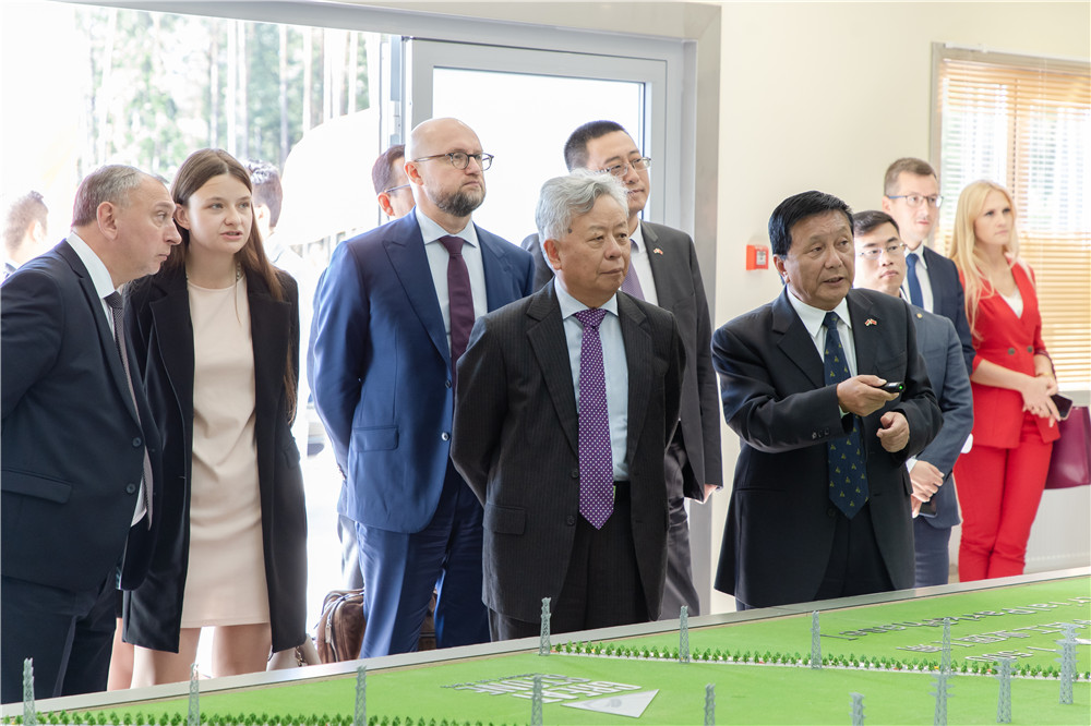 2019年9月4日,亞洲基礎(chǔ)設(shè)施投資銀行(簡(jiǎn)稱“亞投行”)行長(zhǎng)金立群考察中白工業(yè)園,園區(qū)管委會(huì)主任亞羅申科、開(kāi)發(fā)公司CEO胡政陪同考察并舉行會(huì)談。