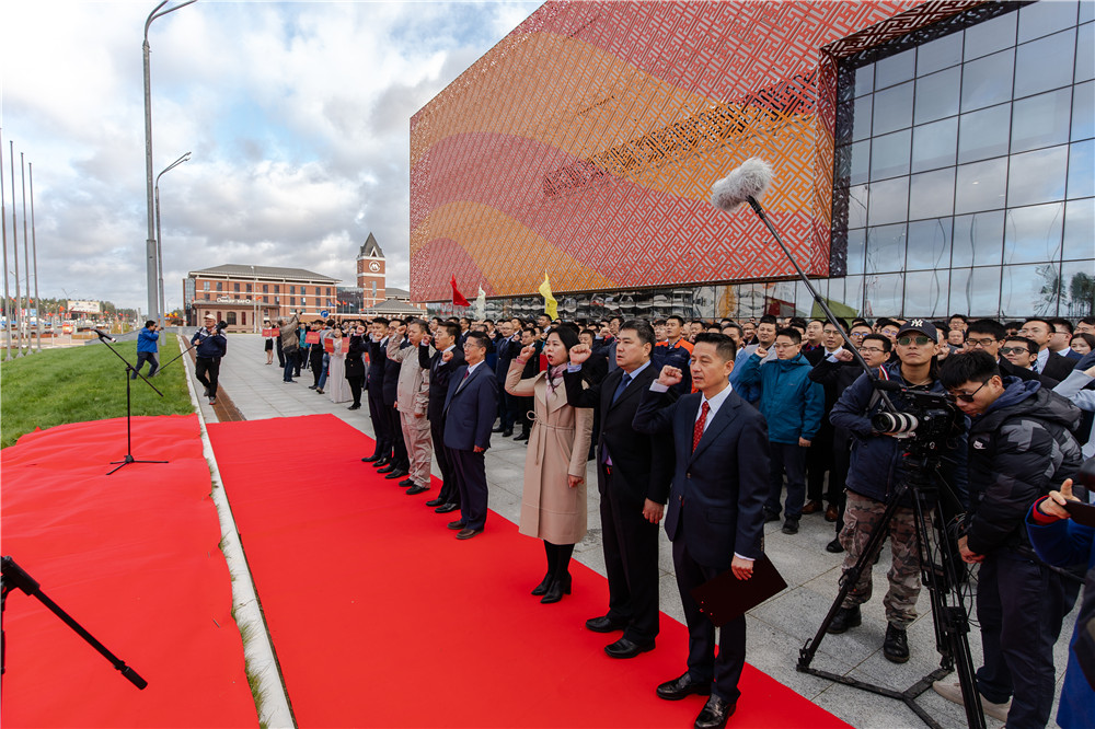 中白工業(yè)園區(qū)開發(fā)公司CEO、白俄羅斯中國(guó)企業(yè)商會(huì)名譽(yù)會(huì)長(zhǎng)胡政帶領(lǐng)全體人員向國(guó)旗莊嚴(yán)宣誓:“我們身在海外,我們忠于祖國(guó);維護(hù)國(guó)家尊嚴(yán),珍惜國(guó)家形象;我們血脈相連,我們團(tuán)結(jié)友愛;祖國(guó)在我心中,國(guó)家利益至上;我們不忘初心,我們肩負(fù)重任;踐行一帶一路,追求偉大夢(mèng)想;我們聽從召喚;我們勇往直前;保持堅(jiān)定信念,積極拼搏進(jìn)??;我們是中華兒女,我們是炎黃子孫,我們是國(guó)家公民,我們是光榮的中國(guó)人!”鏗鏘有力的誓詞在中白工業(yè)園的上空久久回響,在場(chǎng)人員心向祖國(guó)的激動(dòng)心情溢于言表。