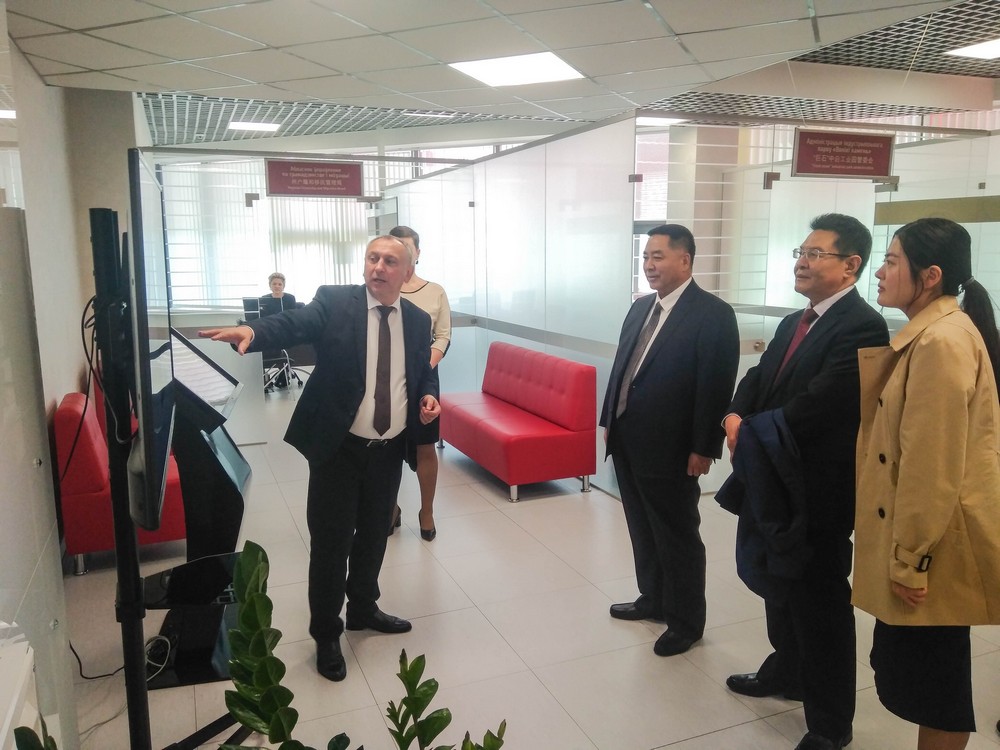2019年10月17日下午,內(nèi)蒙古自治區(qū)國(guó)際貿(mào)易促進(jìn)會(huì)會(huì)長(zhǎng)靳生瑞一行考察園區(qū),園區(qū)管委會(huì)主任亞羅申科、開發(fā)公司副總經(jīng)理任飛陪同考察。