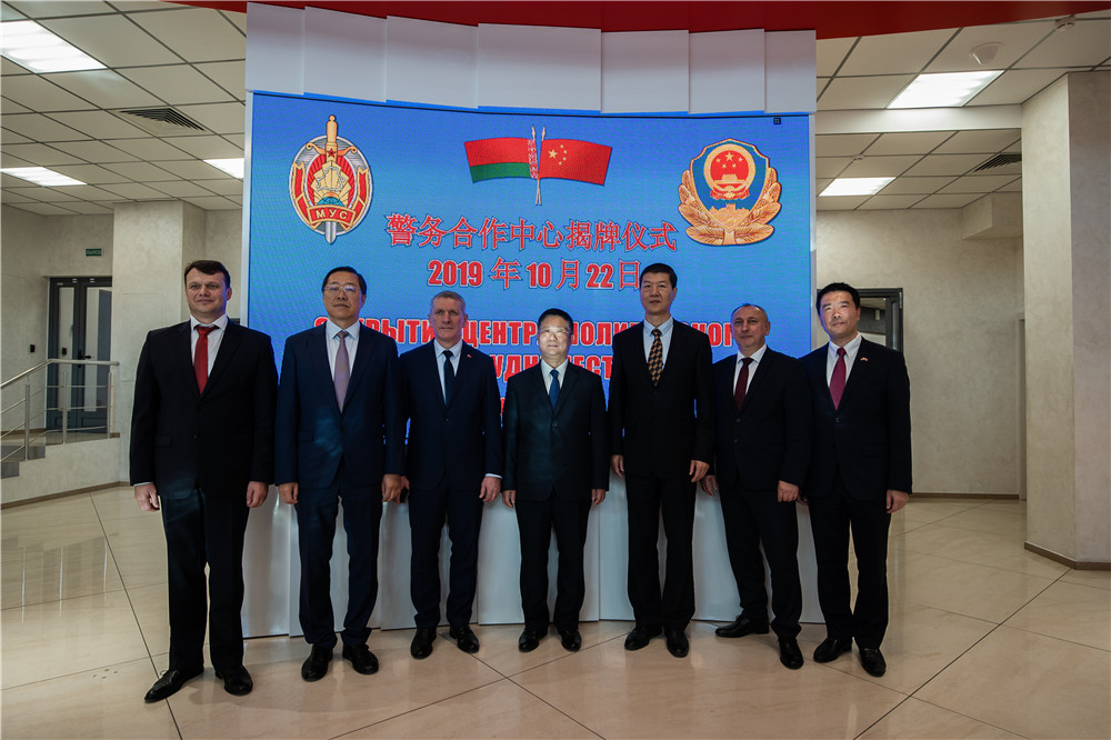 2019年10月22日上午,中白警務(wù)合作中心( 以下簡稱“警務(wù)合作中心”)揭牌儀式在中白工業(yè)園隆重舉行。白俄羅斯內(nèi)務(wù)部副部長梅利琴科、中國駐白俄羅斯特命全權(quán)大使崔啟明、中國公安部國際合作局副局長段大啟、北京市公安局副局長潘緒宏、明斯克州執(zhí)委會(huì)內(nèi)務(wù)局局長科瓦利丘克、中白工業(yè)園管委會(huì)主任亞羅申科、開發(fā)公司總經(jīng)理嚴(yán)剛等領(lǐng)導(dǎo)出席本次活動(dòng)并發(fā)表致辭,梅利琴科和段大啟共同為警務(wù)合作中心剪彩。