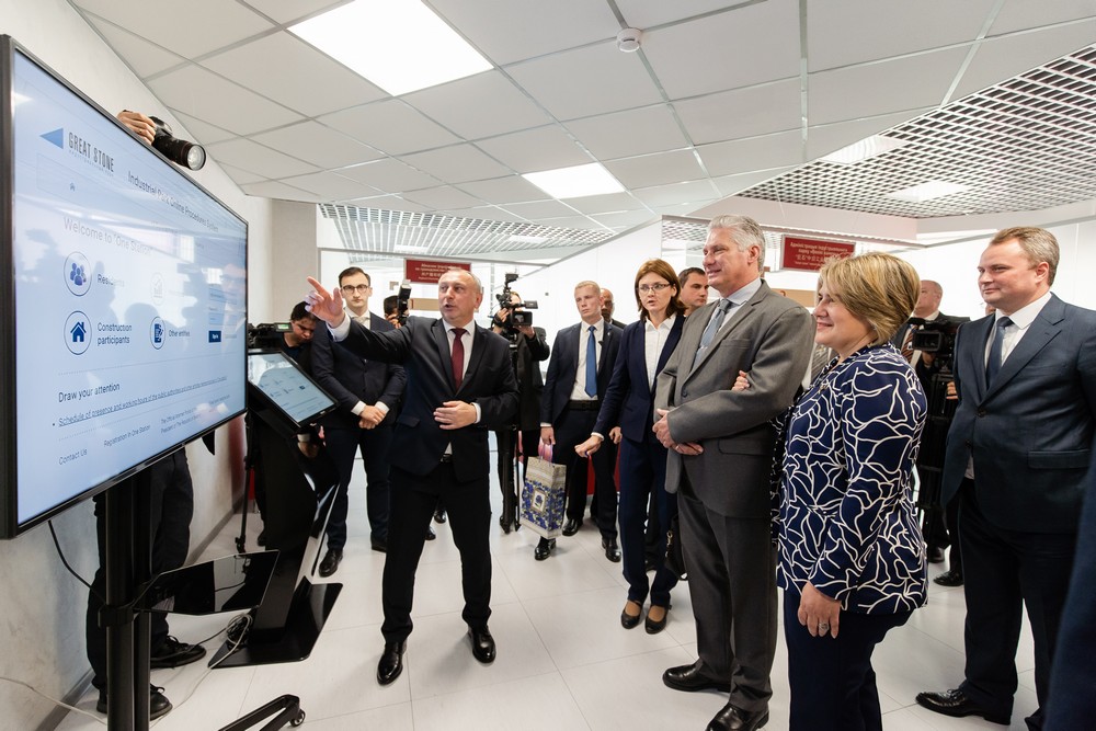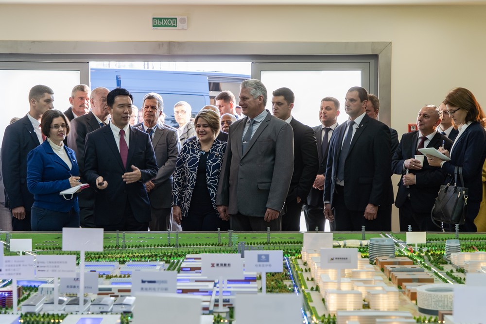 2019年10月22日下午,古巴共和國元首、國家主席迪亞斯-卡內(nèi)爾訪問中白工業(yè)園。中白工業(yè)園管委會(huì)主任亞羅申科、開發(fā)公司總經(jīng)理嚴(yán)剛接待代表團(tuán)一行。