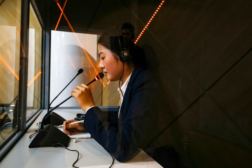 2019年11月23日,由白俄羅斯國(guó)立技術(shù)大學(xué)科技孔子學(xué)院、中白工業(yè)園區(qū)開(kāi)發(fā)股份有限公司共同主辦的第五屆“一帶一路”國(guó)際科技翻譯大賽決賽在中白工業(yè)園新聞發(fā)布廳順利舉行,本次大賽決賽得到了白俄羅斯著名同聲翻譯員阿納斯塔西亞·謝馬什科全程參與和指導(dǎo)。在決賽中來(lái)自獨(dú)聯(lián)體各國(guó)以及中國(guó)的選手們充分展示了出色的漢俄互譯能力。決賽包括口譯、視譯、交傳、同傳及商務(wù)翻譯等環(huán)節(jié)。最終,來(lái)自中白工業(yè)園開(kāi)發(fā)公司的高級(jí)譯員汪曉在眾多強(qiáng)手中斬獲專業(yè)組第一名。
