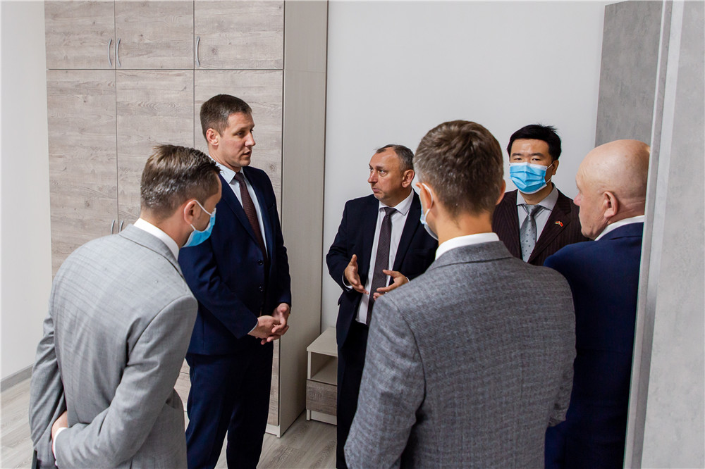帕爾哈莫維奇先后考察了園區(qū)科創(chuàng)中心、公寓樓、標(biāo)準(zhǔn)廠房、辦公樓等項(xiàng)目,在詳細(xì)了解項(xiàng)目的建設(shè)和運(yùn)營(yíng)情況后,對(duì)園區(qū)的快速發(fā)展和項(xiàng)目的建設(shè)表示肯定。在座談會(huì)上,亞羅申科向帕爾哈莫維奇介紹了園區(qū)的發(fā)展歷程及相關(guān)項(xiàng)目的進(jìn)展,隨后,帕爾哈莫維奇認(rèn)真聽取了園區(qū)在建項(xiàng)目的匯報(bào),他表示,園區(qū)的發(fā)展迅速,建筑與建設(shè)部將繼續(xù)支持園區(qū)的發(fā)展,為園區(qū)下一階段的基礎(chǔ)設(shè)施建設(shè)提供幫助和支持。