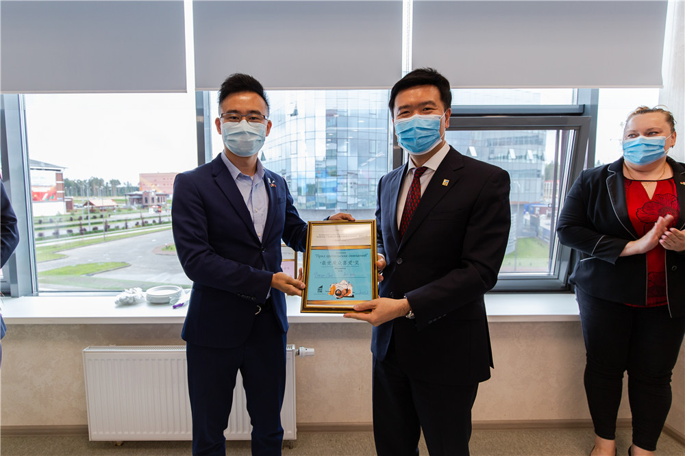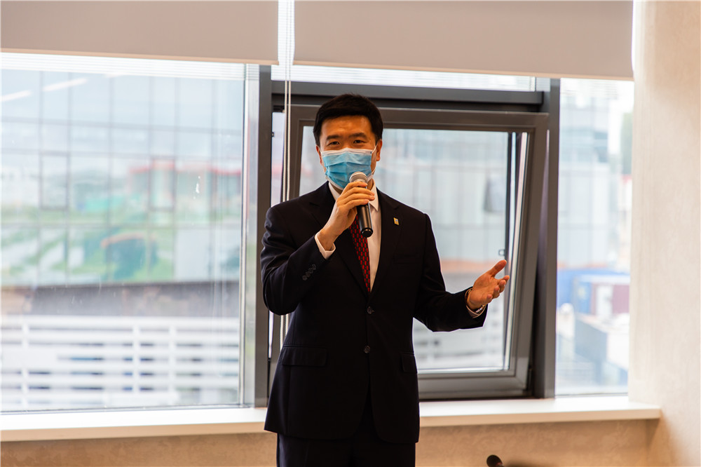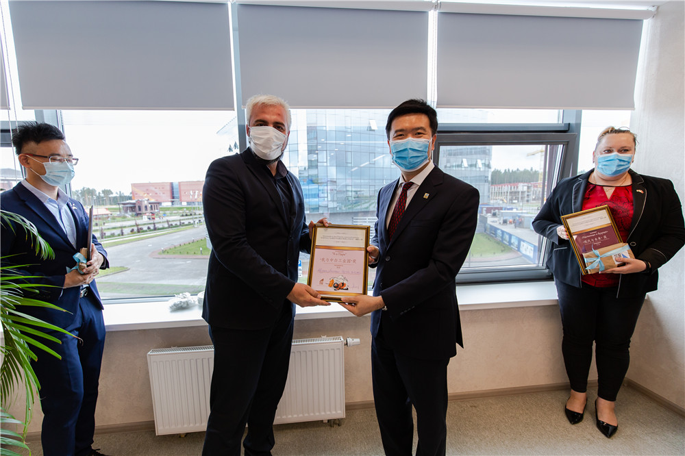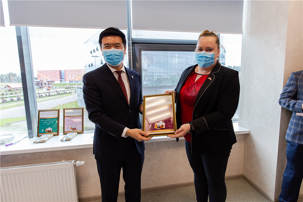嚴剛總經理在致辭中表示,不積跬步無以至千里,不積小流無以成江海,中白工業(yè)園及園區(qū)開發(fā)公司的取得的成績離不開中白兩國政府和股東單位的支持、入園企業(yè)的貢獻和廣大員工的努力,也離不開園區(qū)開拓者們的艱辛付出。隨著中白兩國經貿合作不斷發(fā)展,開發(fā)公司將繼續(xù)堅定信心,克服困難,推動園區(qū)的高質量發(fā)展。剛察洛夫副主任代表園區(qū)管委會向開發(fā)公司成立八周年表示祝賀,他表示,八年來,開發(fā)公司為園區(qū)的發(fā)展做出了卓有成效的工作,取得了快速的發(fā)展,相信在管委會和開發(fā)公司的通力合作和員工的共同努力下,園區(qū)將實現(xiàn)新的跨越式發(fā)展。