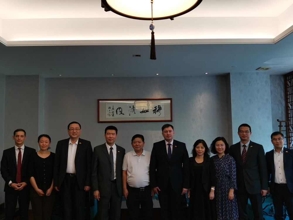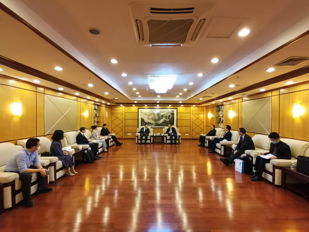 2020年11月10日上午,中白工業(yè)園區(qū)開發(fā)股份有限公司總經(jīng)理嚴(yán)剛一行赴廣州拜訪廣東省商務(wù)廳陳越華副廳長。