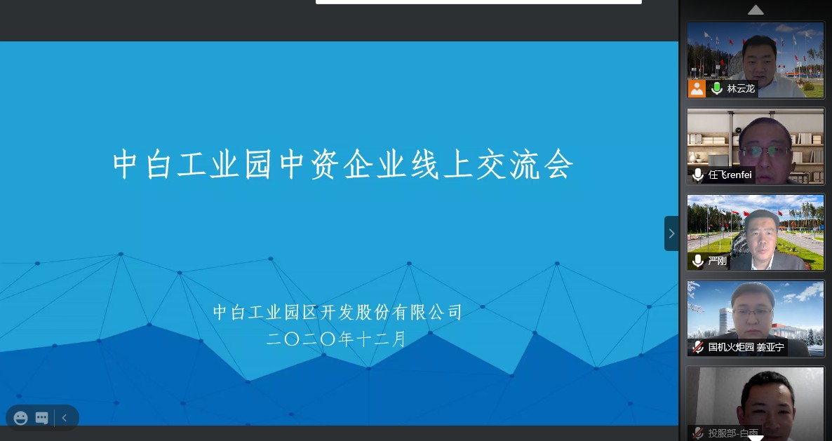 2020年12月2日下午,中白工業(yè)園開發(fā)公司通過視頻組織召開中資居民企業(yè)第四季度安全生產(chǎn)及防疫專題會(huì)。開發(fā)公司總經(jīng)理嚴(yán)剛及各中資居民企業(yè)負(fù)責(zé)人出席本次會(huì)議,會(huì)議由開發(fā)公司副總經(jīng)理任飛主持。