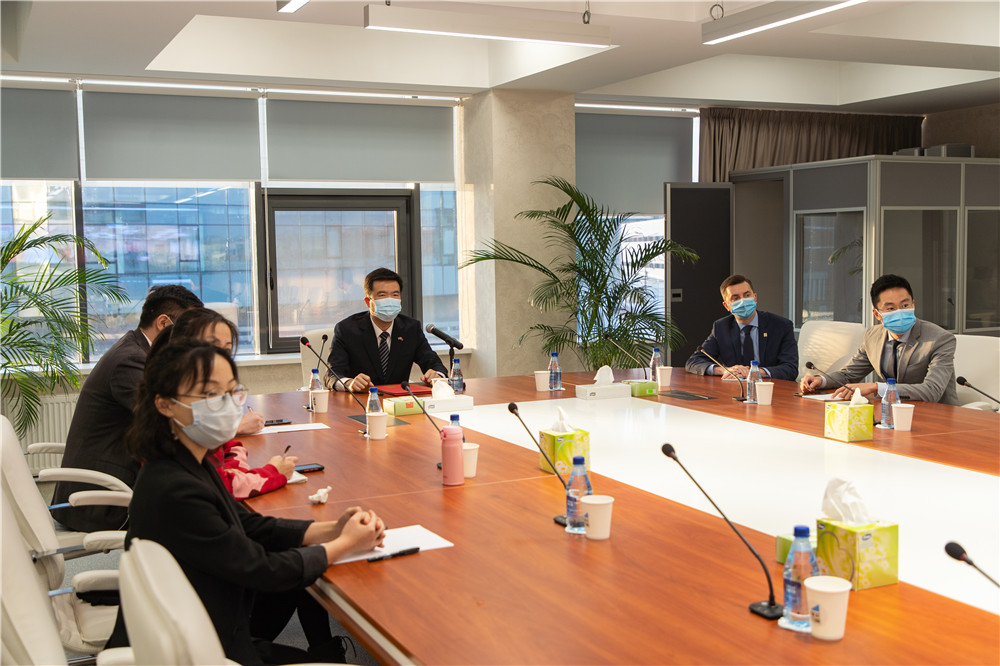 白俄羅斯國家科學院第一副主席齊日科、國際合作處處長弗拉基米爾、開發(fā)公司第一副總經理卡羅杰耶夫、總經理助理吳鵬等參加本次簽約儀式。(投資服務部 文/圖)