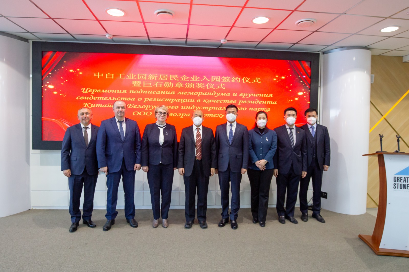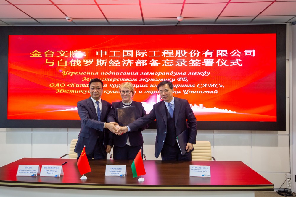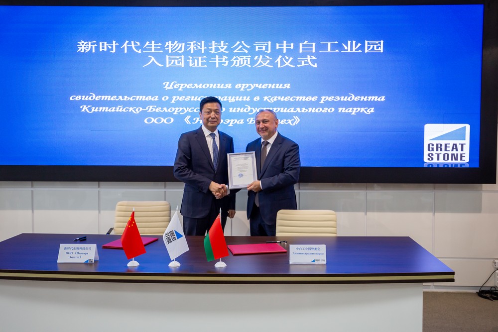3月18日上午,中白工業(yè)園舉行了新時(shí)代生物科技有限公司(以下簡稱“新時(shí)代生物公司”)入園儀式,中國駐白俄羅斯大使謝小用、商務(wù)參贊趙秋艷、白俄羅斯經(jīng)濟(jì)部副部長安澤麗卡、衛(wèi)生部副部長安德羅修克、中白工業(yè)園區(qū)管委會(huì)主任亞羅申科、中白工業(yè)園開發(fā)公司總經(jīng)理嚴(yán)剛、金臺(tái)文院院長蔡傳慶、國機(jī)集團(tuán)中工國際總經(jīng)理王宇航等出席現(xiàn)場簽約儀式。白俄羅斯駐中國大使尤里·先科、中國國家中醫(yī)藥管理局副局長孫達(dá)、中國國家藥品監(jiān)督管理局藥品安全總監(jiān)李波、中國商務(wù)部歐亞司副司長劉雪松等以視頻方式在北京見證了本次活動(dòng)。儀式上,管委會(huì)亞羅申科主任向蔡傳慶院長頒發(fā)了居民企業(yè)證書,新時(shí)代生物公司成為中白工業(yè)園第69家入園企業(yè),也是白俄羅斯首家中醫(yī)藥項(xiàng)目的企業(yè)。