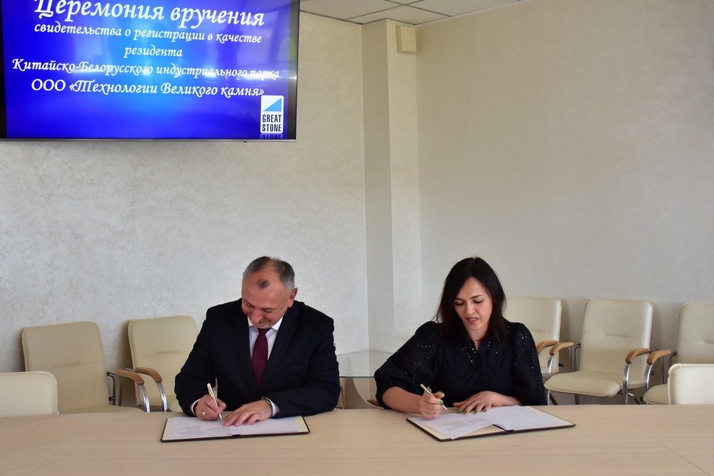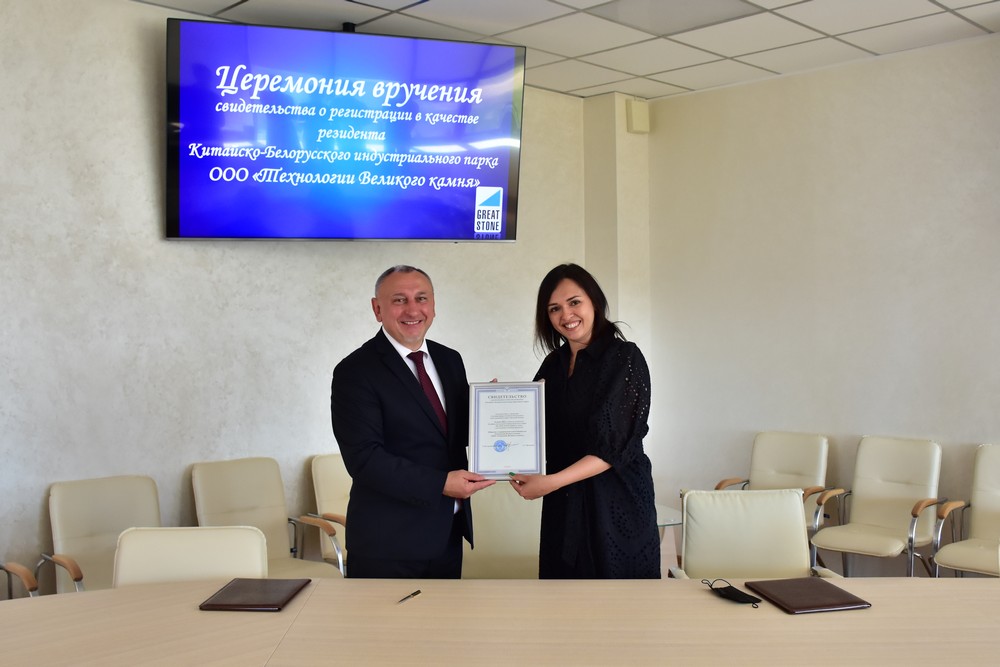 6 月 16 日,巨石科技有限責(zé)任公司注冊(cè)成為中白工業(yè)園的新居民企業(yè),在中白工業(yè)園開發(fā)公司嚴(yán)剛總經(jīng)理等領(lǐng)導(dǎo)的見證下,園區(qū)管委會(huì)主任亞羅申科向該企業(yè)負(fù)責(zé)人安娜·林尼克頒發(fā)了居民企業(yè)證書。