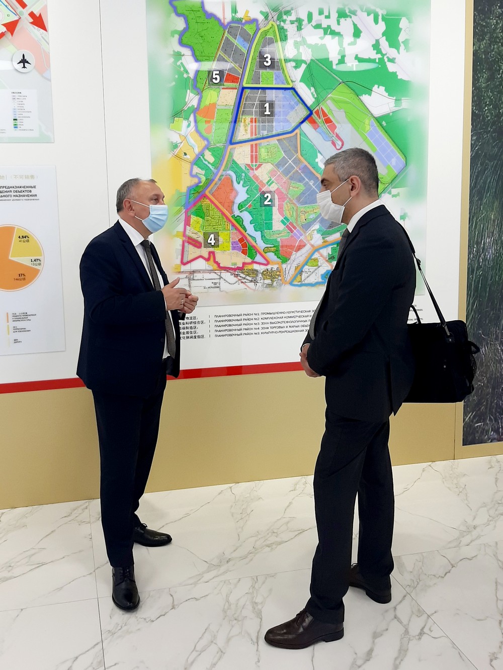 在園區(qū)規(guī)劃展示館,雅羅申科主任向薩阿基揚(yáng)副部長介紹了園區(qū)發(fā)展歷程和建設(shè)進(jìn)展,居民企業(yè)、稅收優(yōu)惠政策等情況。薩阿基揚(yáng)副部長對科創(chuàng)中心吸引和發(fā)展初創(chuàng)企業(yè)的職能規(guī)劃產(chǎn)生了濃厚的興趣,并表示將在園區(qū)為這些初創(chuàng)企業(yè)提供支持。此外,薩阿基揚(yáng)副部長還了解了為園區(qū)居民企業(yè)和投資者設(shè)立的“一站式”綜合服務(wù)大廳的辦公職能。
