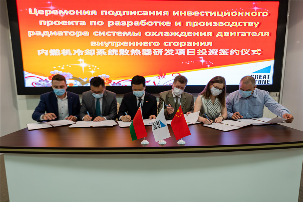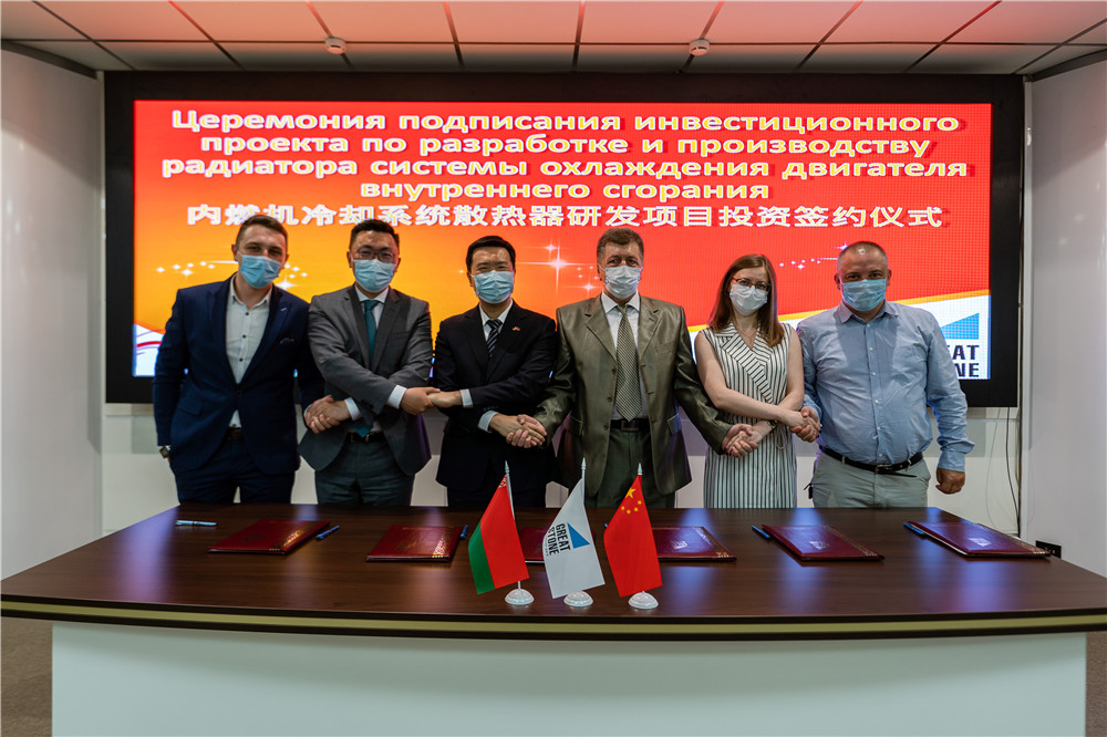 6月24日,中白工業(yè)園區(qū)開(kāi)發(fā)股份有限公司(以下簡(jiǎn)稱“開(kāi)發(fā)公司”)投資的首家“星火計(jì)劃”初創(chuàng)項(xiàng)目SPETSTEPLOBEL內(nèi)燃機(jī)散熱器系統(tǒng)項(xiàng)目(以下簡(jiǎn)稱“散熱器項(xiàng)目”)簽約儀式在中白工業(yè)園舉行。園區(qū)開(kāi)發(fā)公司總經(jīng)理嚴(yán)剛,白俄羅斯國(guó)家科學(xué)技術(shù)委員會(huì)副主席謝爾巴科夫,園區(qū)管委會(huì)副主任塔巴紐霍夫,白俄羅斯國(guó)家科學(xué)院主席團(tuán)代表卡爾納喬夫,白俄羅斯國(guó)家科學(xué)院聯(lián)合機(jī)械工程所副所長(zhǎng)耶羅維,項(xiàng)目其他股東代表、園區(qū)管委會(huì)以及開(kāi)發(fā)公司相關(guān)負(fù)責(zé)人出席了本次簽約儀式,開(kāi)發(fā)公司總經(jīng)理助理吳鵬作為跟投代表參加簽約。