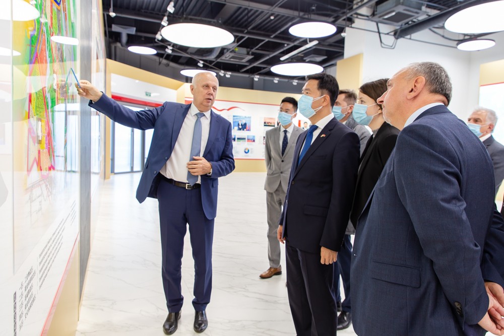 考察期間,西瓦克副總理詳細了解了引入園區(qū)物流區(qū)的鐵路支線的籌建情況及M2公路的交叉點規(guī)劃設(shè)計情況。在參觀園區(qū)規(guī)劃展示館期間,西瓦克副總理饒有興致地聽取了亞羅申科主任和嚴剛總經(jīng)理關(guān)于園區(qū)規(guī)劃發(fā)展歷程、居民企業(yè)發(fā)展及園區(qū)項目推進的相關(guān)匯報,在探討進一步提高園區(qū)與周邊市區(qū)通行便利性時,西瓦克副總理親自介紹了白俄政府計劃開通的與園區(qū)相關(guān)的公共交通線路。
