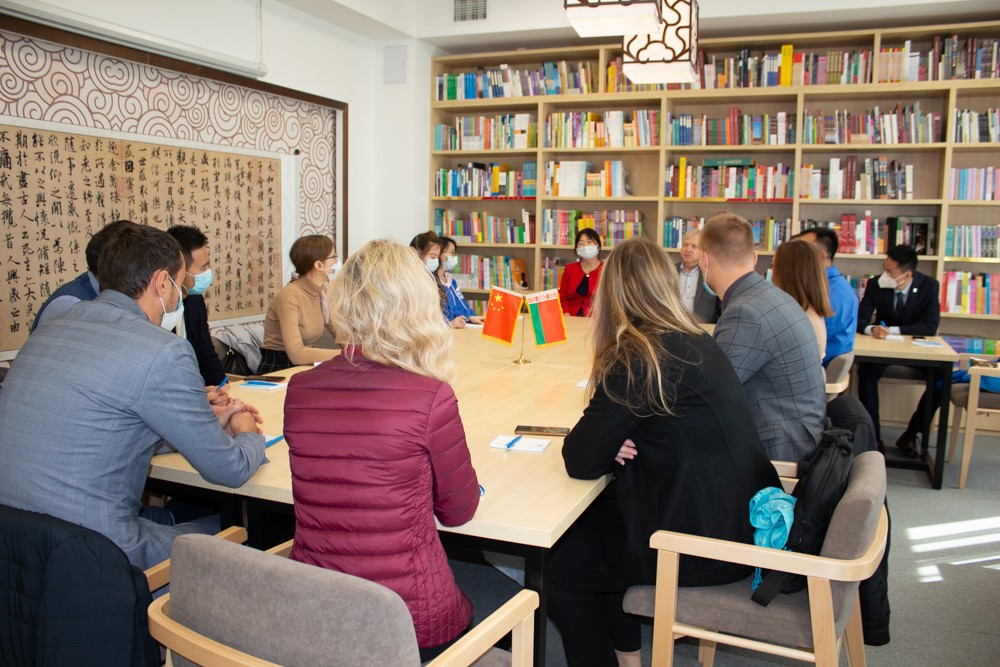 9月8日,中白工業(yè)園區(qū)開發(fā)公司舉辦第三期后備干部“孔院一日行”活動(dòng),培訓(xùn)班學(xué)員參觀了白俄羅斯國立大學(xué)共和國漢學(xué)孔子學(xué)院,并與白俄羅斯共和國內(nèi)閣前副總理、孔院院長托濟(jì)克及中方院長劉素玲舉行座談會(huì)。