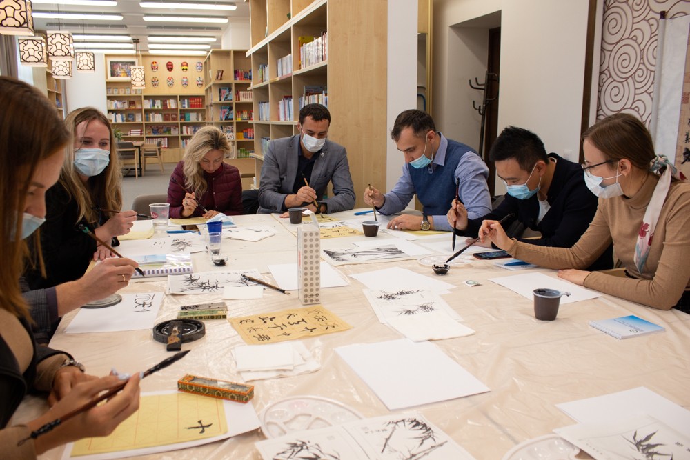 此次參觀活動(dòng)中,學(xué)員們還欣賞了由孔院老師帶來的茶藝展示和傳統(tǒng)文化欣賞,并跟著孔院老師一起書寫了毛筆字和畫“中國畫”,學(xué)員們深刻地感受到了中國文化的魅力。未來中白工業(yè)園和白俄羅斯國立大學(xué)共和國漢學(xué)孔子學(xué)院還將有更多的交流與合作。