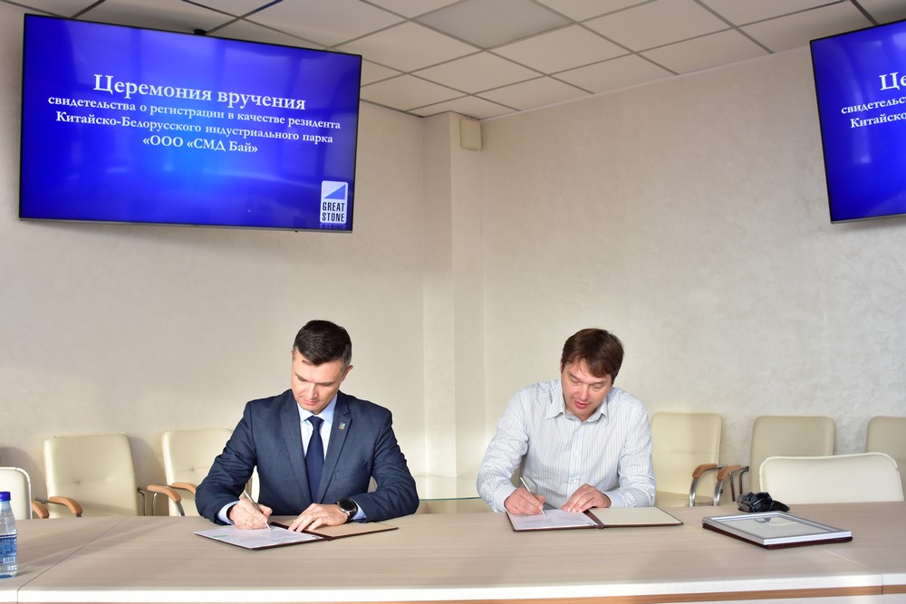 10 月 21 日,SMD BY有限責任公司注冊成為中白工業(yè)園第80家居民企業(yè),園區(qū)管委會主任亞羅申科向總經(jīng)理赫瓦利科·謝爾蓋頒發(fā)了入園證書。