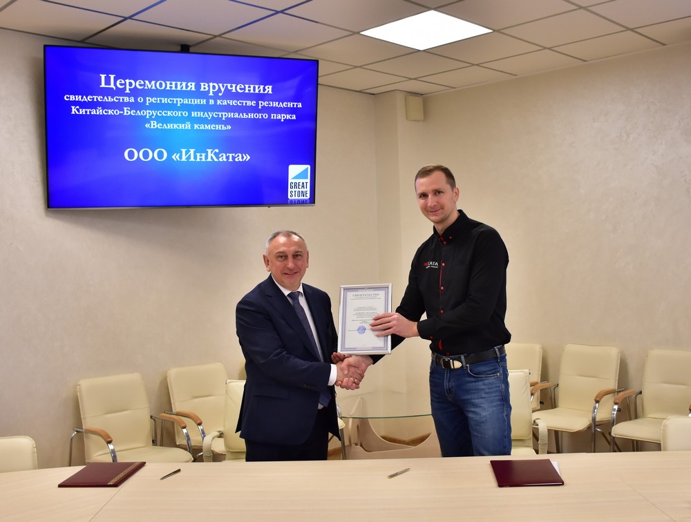 11月24日,白俄羅斯的EnCata有限責任公司注冊成為居民企業(yè),園區(qū)管委會主任亞羅申科向EnCata有限責任公司分公司經理馬利切夫斯基·葉夫格尼頒發(fā)了入園證書。