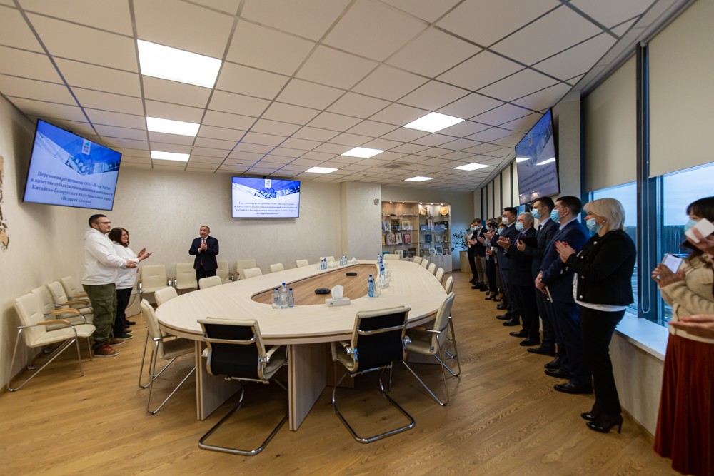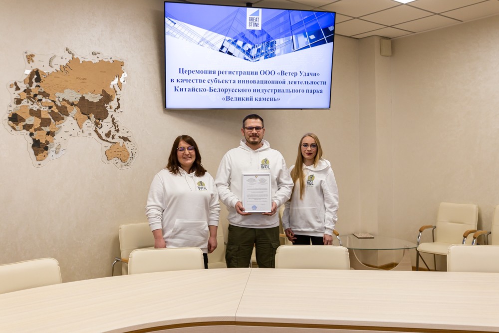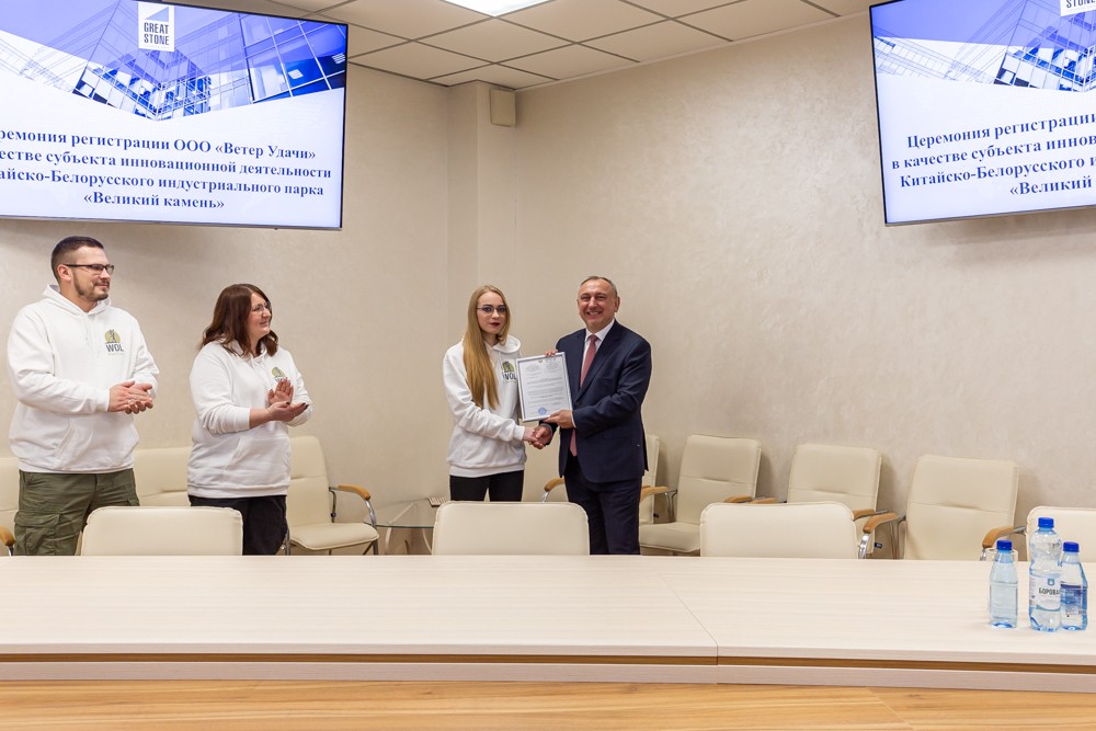 12月14日,中白工業(yè)園園區(qū)管委會(huì)主任亞羅申科為白俄羅斯Wind Of Luck公司頒發(fā)初創(chuàng)企業(yè)入園證書。管委會(huì)第一副主任雅克莫夫、副主任塔巴紐霍夫、開發(fā)公司副總經(jīng)理維杰霍夫斯基、總經(jīng)理助理吳鵬出席本次活動(dòng)。