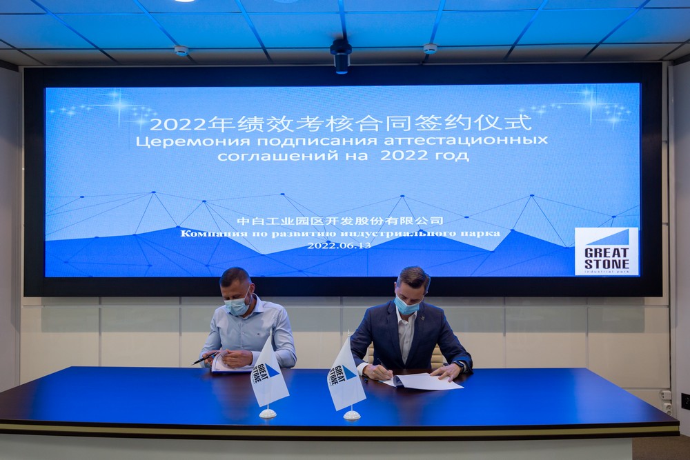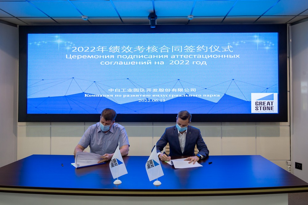6月13日,中白工業(yè)園區(qū)開發(fā)公司舉行全資子公司績效考核合同簽約儀式,開發(fā)公司總經(jīng)理李鐘漢出席儀式并致辭,公司第一副總經(jīng)理卡羅杰夫分別與水務(wù)公司總經(jīng)理休爾科和物業(yè)公司總經(jīng)理若洛夫簽訂了績效考核合同,總經(jīng)理助理吳鵬主持簽約儀式。
