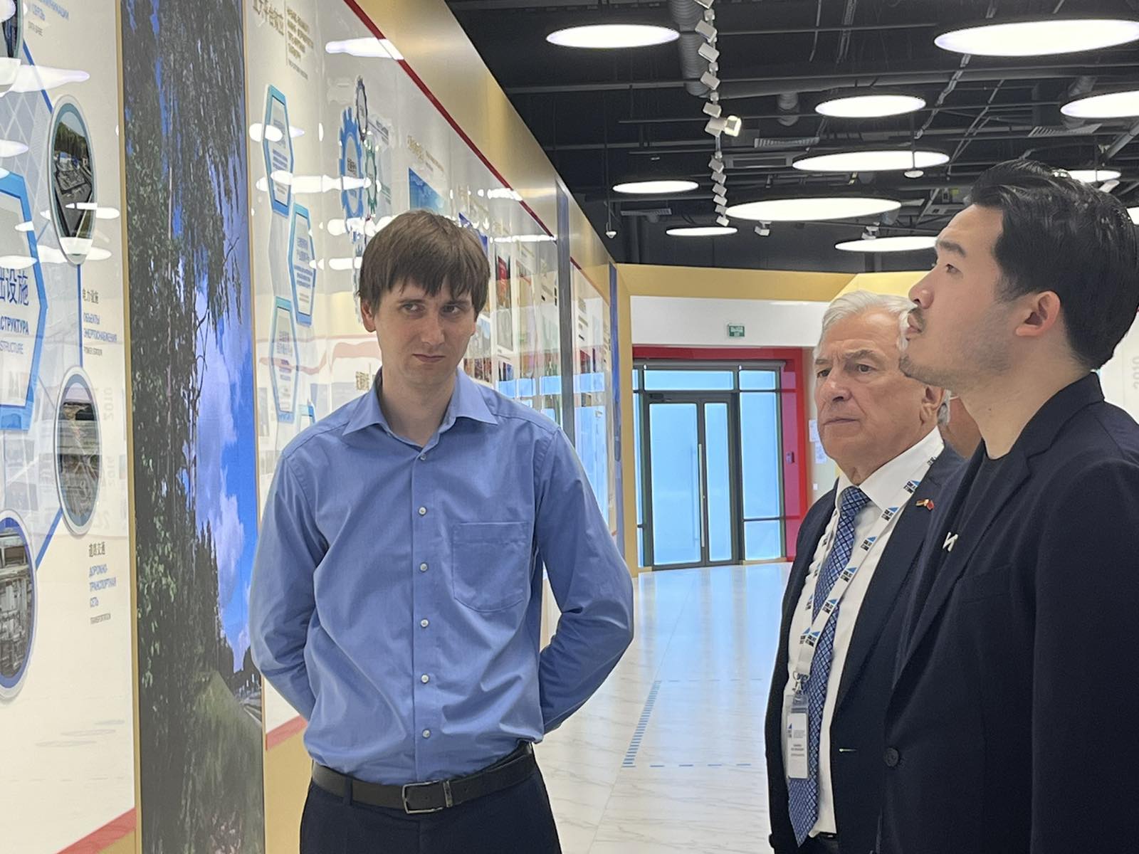 考察期間,伊伊茲哈爾執(zhí)行副總裁在園區(qū)規(guī)劃館了解了園區(qū)發(fā)展歷程和基礎(chǔ)設(shè)施建設(shè)等情況,園區(qū)生產(chǎn)電動滑板車的居民企業(yè)還還向伊伊茲哈爾展示了其生產(chǎn)產(chǎn)品。座談會上,雙方就園區(qū)營商條件和生產(chǎn)環(huán)境等相關(guān)內(nèi)容進行了深入交流。