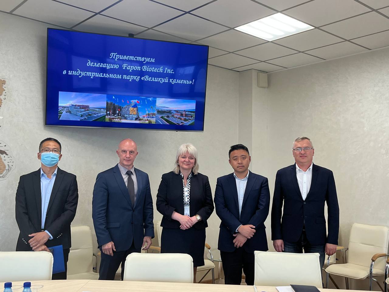 7 月 12 日,中國菲鵬生物股份有限公司國際區(qū)域銷售總監(jiān)李華考察中白工業(yè)園,菲鵬生物俄羅斯和獨聯(lián)體銷售總監(jiān)安東·莫夏金、園區(qū)管委會主任切爾卡索娃陪同考察。