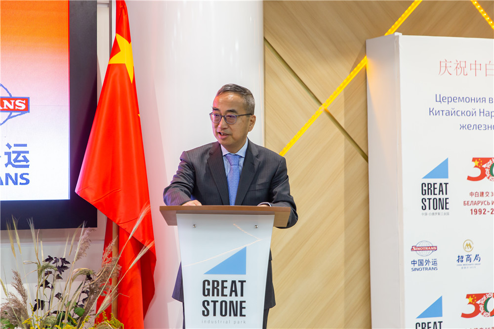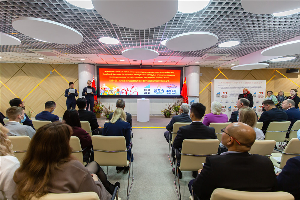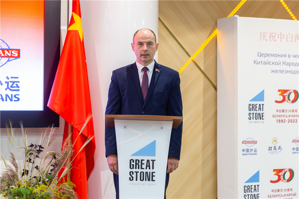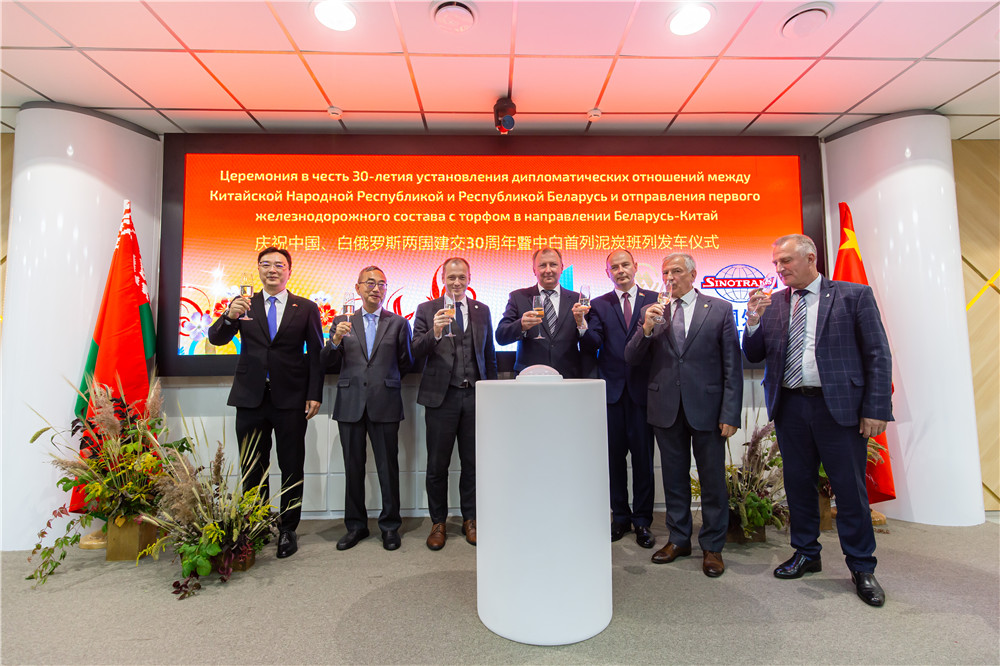 9月22日,慶祝中國、白俄羅斯兩國建交30周年暨中白首列泥炭班列發(fā)車儀式在中白工業(yè)園舉行。白俄羅斯能源部副部長吉尼斯·莫羅茲,白俄羅斯鐵路總公司明斯克局第一副局長舍甫琴科,白俄羅斯國家燃料和氣化生產(chǎn)協(xié)會總經(jīng)理庫什納連科,中白工業(yè)園管委會副主任塔巴紐霍夫,中白工業(yè)園區(qū)開發(fā)股份有限公司總經(jīng)理李鐘漢,招商局中白商貿(mào)物流股份有限公司總經(jīng)理張震勇出席發(fā)車儀式,并共同按下發(fā)車按鈕。