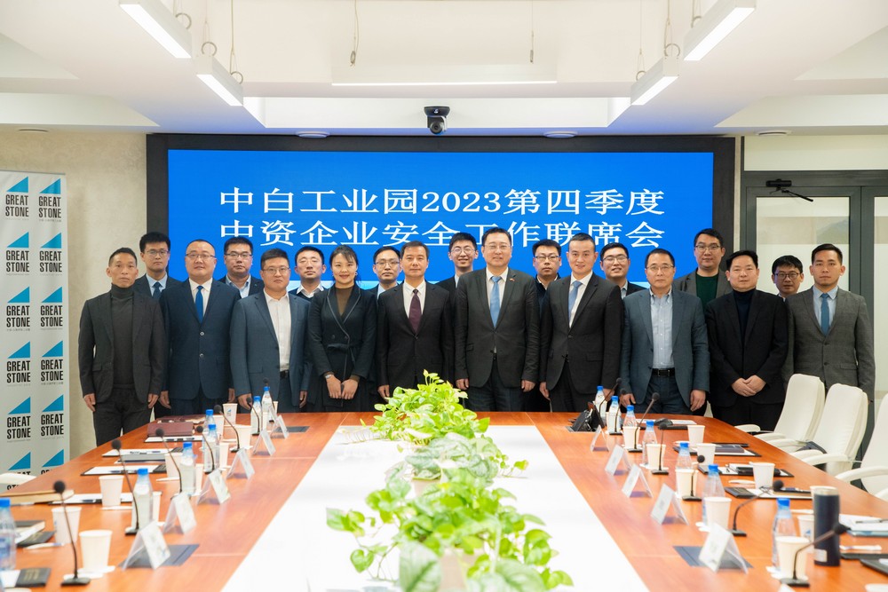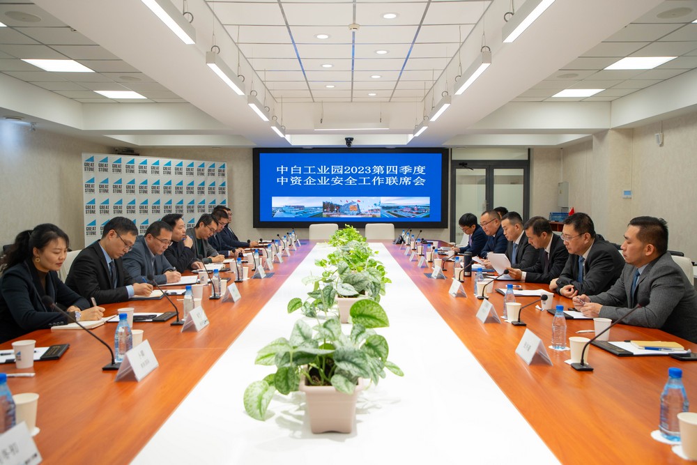 12月19日,中白工業(yè)園第四季度中資企業(yè)安全工作會(huì)議在開發(fā)公司舉行。會(huì)上,中白警務(wù)合作中心工作組新任組長李光輝與園區(qū)中資居民企業(yè)負(fù)責(zé)人進(jìn)行了工作交流,開發(fā)公司副總經(jīng)理任飛介紹了前三季度園區(qū)招商引資情況與經(jīng)營情況,招商局物流園、招商興城、一拖集團(tuán)、法士特、中聯(lián)重科等十余名中資企業(yè)負(fù)責(zé)人參加會(huì)議,中白警務(wù)合作中心工作組副組長查建安主持會(huì)議。