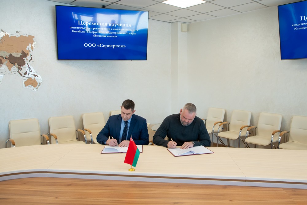 1月17日,服務(wù)器通訊有限責(zé)任公司成為中白工業(yè)園居民企業(yè),管委會第一副主任亞季莫夫與該公司總經(jīng)理聶奇米烈夫簽署入園協(xié)議,并頒發(fā)了入園證書,副主任塔巴紐霍夫、副主任日佳洛、開發(fā)公司第一副總經(jīng)理卡羅捷耶夫參與儀式。