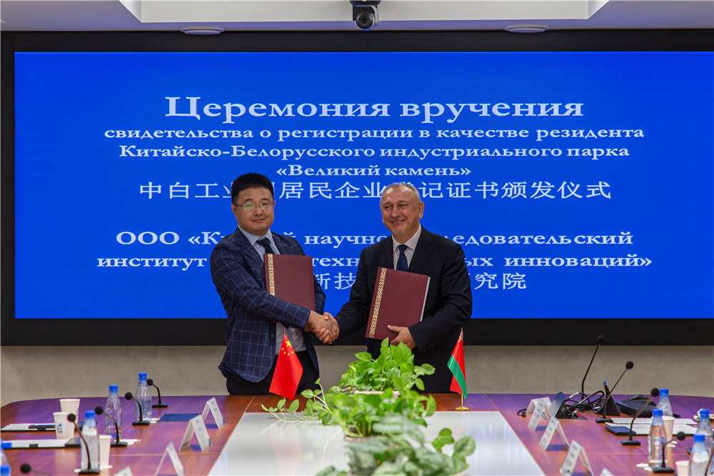 9月14日,山東省委常委、組織部部長王宇燕考察中白工業(yè)園,與園區(qū)管委會主任亞羅申科、白俄羅斯國家科學院第一副主席齊日科、開發(fā)公司總經(jīng)理李鐘漢舉行會談,并共同見證山東省科學院白俄羅斯研究中心簽約成為園區(qū)居民企業(yè)。