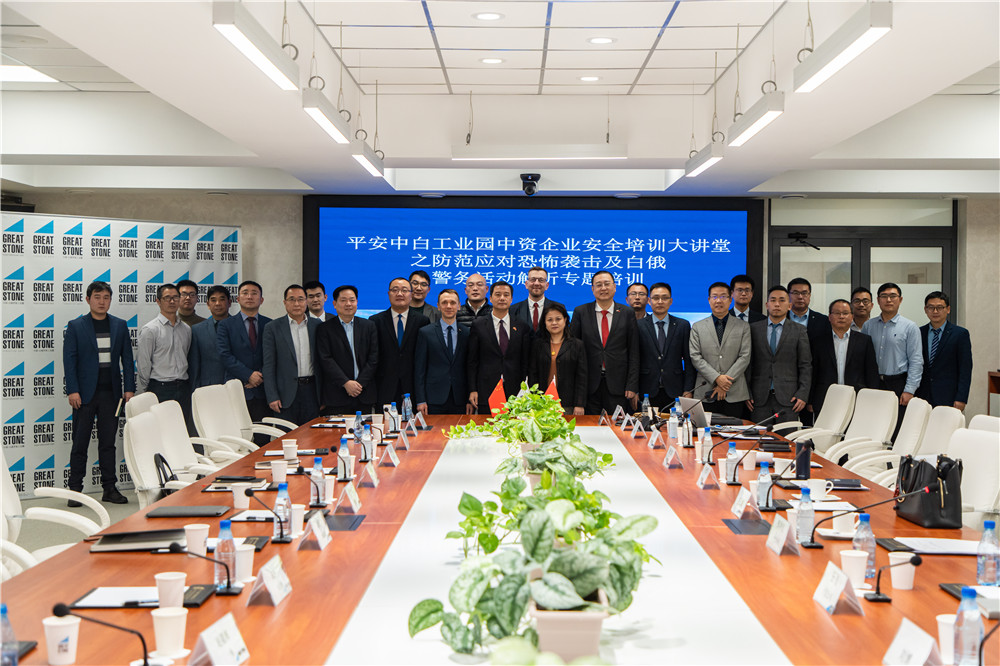 1月22日,平安中白工業(yè)園中資企業(yè)安全培訓(xùn)大講堂活動(dòng)在中白工業(yè)園舉行,中國(guó)駐白使館經(jīng)濟(jì)商務(wù)參贊王蕊娟、園區(qū)開發(fā)公司總經(jīng)理李鐘漢、中白警務(wù)中心中方工作組組長(zhǎng)李光輝出席本次活動(dòng)并發(fā)言,二十余家園區(qū)中資企業(yè)負(fù)責(zé)人參加本次培訓(xùn)活動(dòng)。