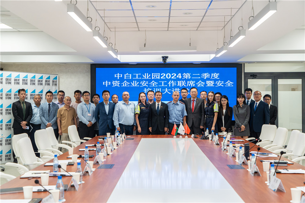 會議中,任飛介紹了園區(qū)上半年的招商引資相關(guān)情況,并表示,中白工業(yè)園是中白兩國重要的經(jīng)貿(mào)合作項目之一,園區(qū)中資企業(yè)不斷加強企業(yè)生產(chǎn)、外派人員等方面的安全管理及培訓(xùn),取得了較好的成效,營造出了越來越好的營商環(huán)境和安全環(huán)境。李光輝組長在總結(jié)發(fā)言中介紹了第二季度中心的工作情況,他強調(diào),在各中資企業(yè)對于安全生產(chǎn)、人員安全的重視和支持下,園區(qū)的上半年中資企業(yè)穩(wěn)定發(fā)展。希望園區(qū)各企業(yè)能落實海外企業(yè)安全的主體責(zé)任,持之以恒、全面加強企業(yè)安全管理,共同維護園區(qū)穩(wěn)定、安全的營商和生活環(huán)境。