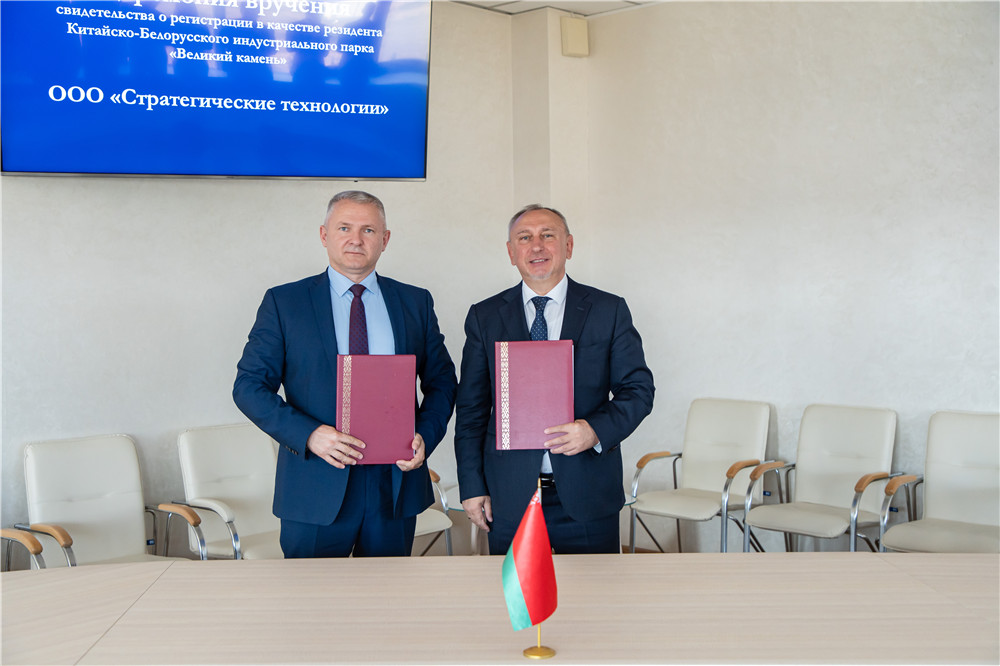 2024年9月10日,白俄戰(zhàn)略技術(shù)有限公司(俄文ООО ?Стратегические технологии? (РБ))成為園區(qū)居民企業(yè),園區(qū)管委會(huì)主任亞羅申科與企業(yè)負(fù)責(zé)人簽署入園協(xié)議,并向其頒發(fā)入園證書,園區(qū)開發(fā)公司總經(jīng)理李鐘漢參加本次活動(dòng)。