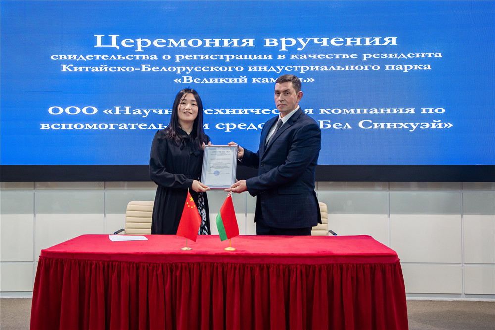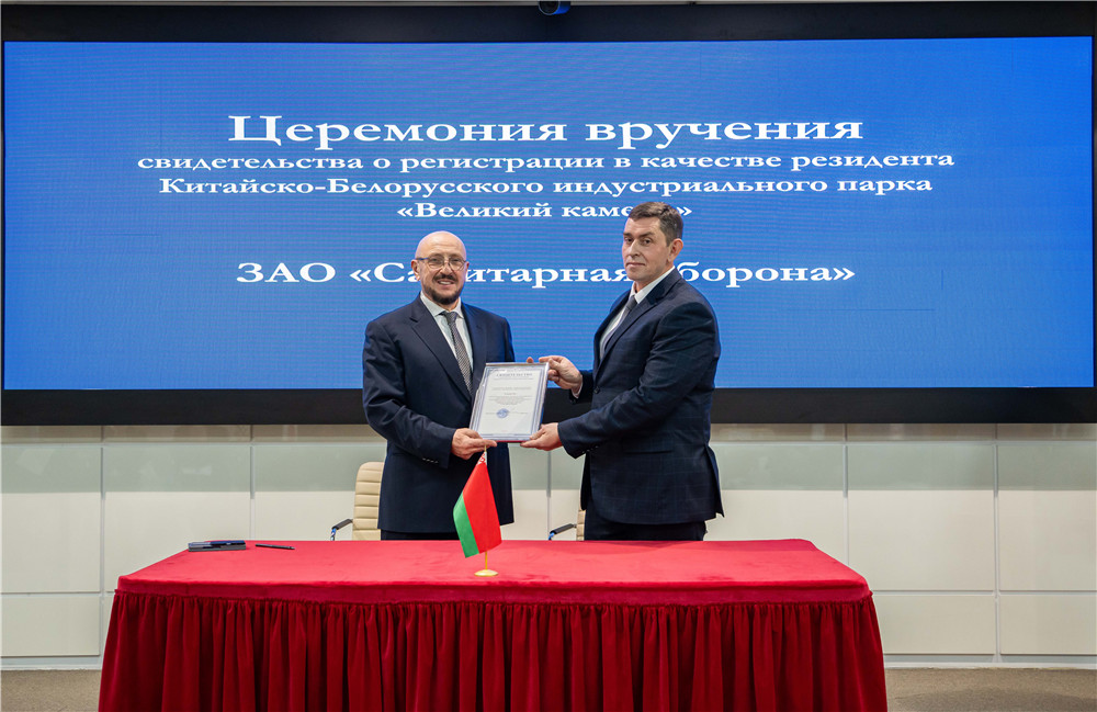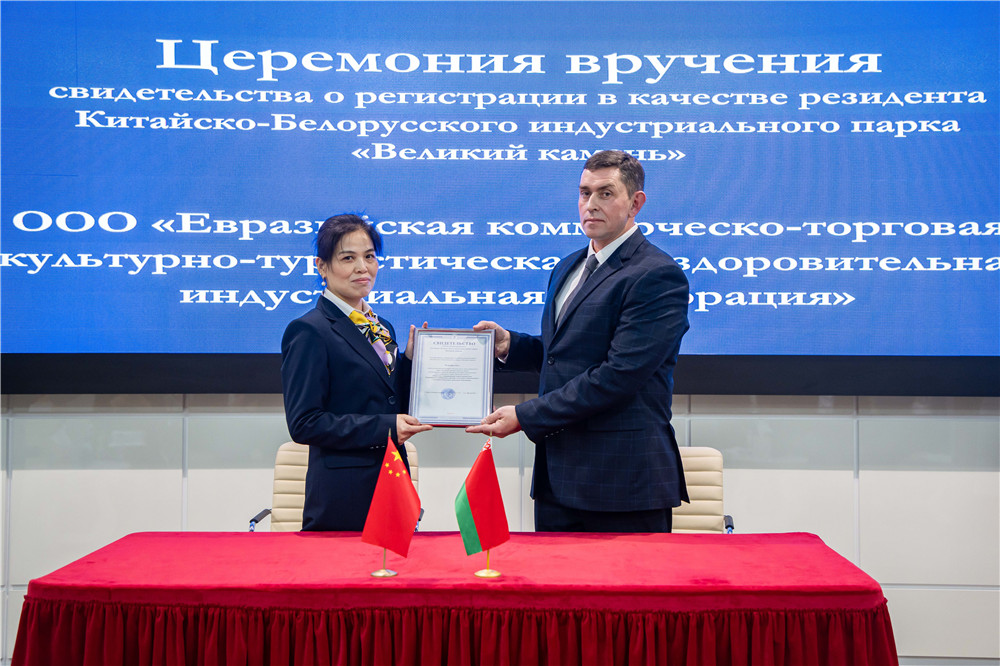 12月5日,中白工業(yè)園入園企業(yè)簽約儀式在園區(qū)辦公樓會議廳舉行,五家來自中國、白俄羅斯和俄羅斯的居民企業(yè)入駐園區(qū),園區(qū)管委會第一副主任亞基莫夫分別與歐亞商貿(mào)文旅大健康產(chǎn)業(yè)集團(tuán)、白俄星耀智能輔具科技有限公司、衛(wèi)生防護(hù)股份有限公司(ЗАО ?Санитарная оборона?)、創(chuàng)新技術(shù)方案有限公司(ООО ?Инновационные технологические решения?)、KN物流有限公司(ООО ?КН-Логистикс?)等五家企業(yè)負(fù)責(zé)人簽署入園協(xié)議并頒發(fā)入園證書,園區(qū)開發(fā)公司總經(jīng)理李鐘漢出席本次入園企業(yè),中實(集團(tuán))公司董事、總裁韓國華受邀代表中實(集團(tuán))公司董事局主席、國際和平聯(lián)盟(太空)執(zhí)行主席、國際宇航科學(xué)院院士王天怡線上致辭并向五家企業(yè)入園表示祝賀。