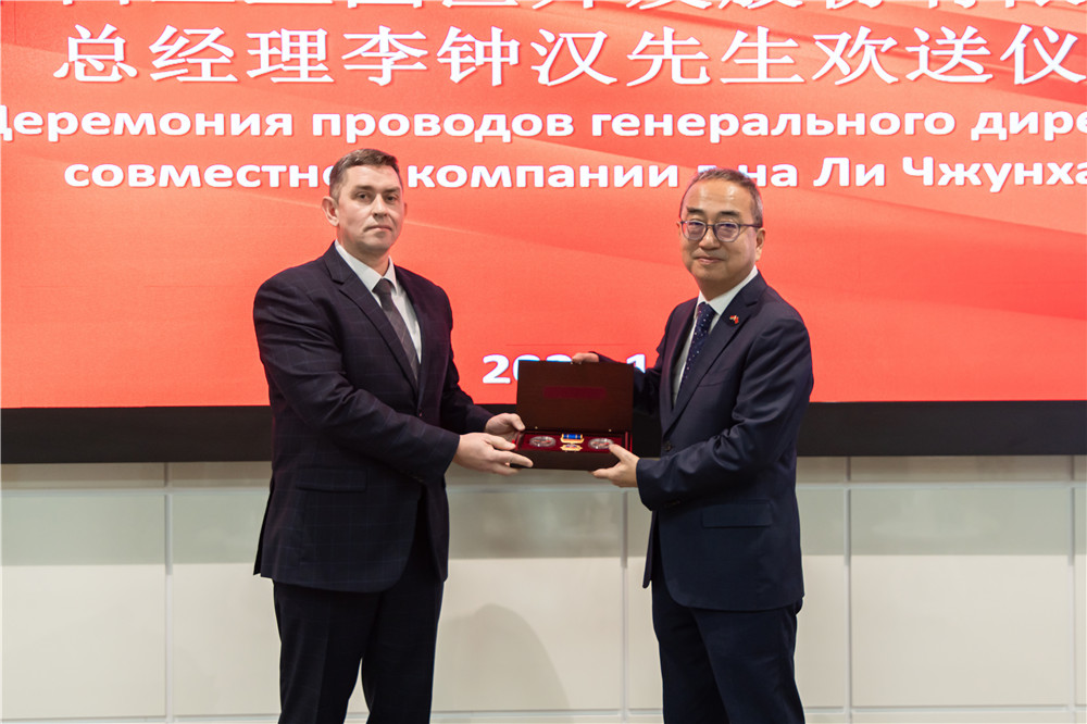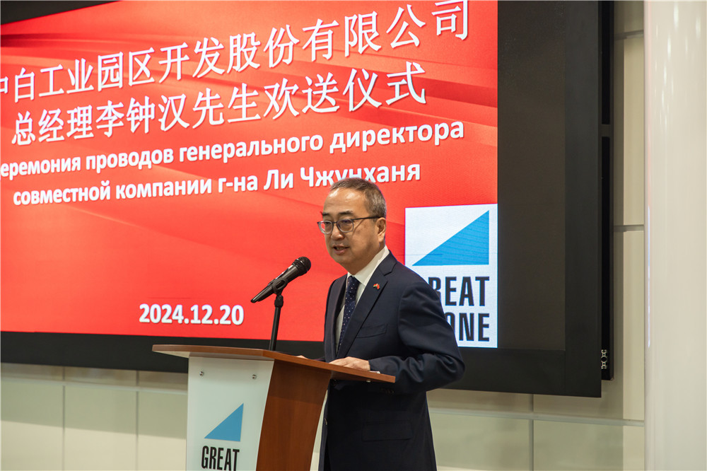 2024年12月20日,中白工業(yè)園舉行園區(qū)開發(fā)公司總經理李鐘漢歡送儀式,園區(qū)管委會第一副主任亞基莫夫向即將離任的李鐘漢總經理頒發(fā)榮譽紀念章,園區(qū)管委會副主任塔巴紐霍夫、副主任日加洛、園區(qū)開發(fā)公司第一副總經理卡羅杰耶夫、副總經理副總經理任飛、副總經理杰特卡夫等代表領導出席本次活動。