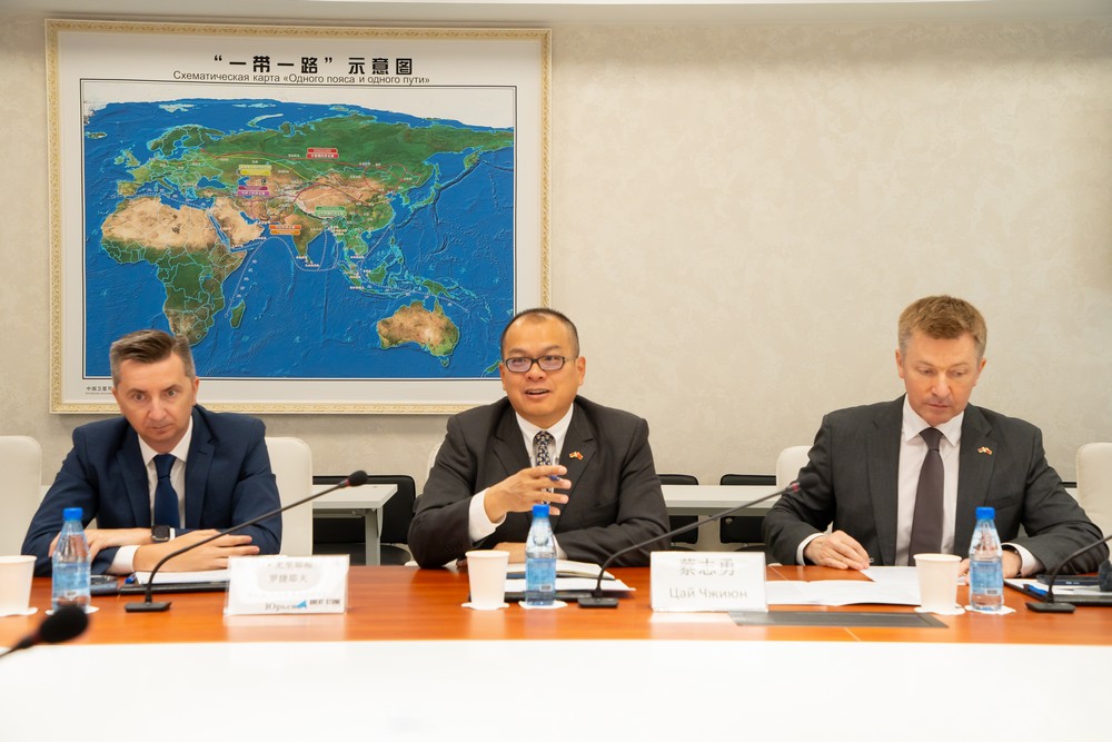 2025年8月26日,重慶海特汽車排氣系統(tǒng)有限公司董事長(zhǎng)秦瑞平率代表團(tuán)一行訪問(wèn)中白工業(yè)園。園區(qū)管委會(huì)第一副主任列別江采夫、副主任塔巴紐霍夫,開(kāi)發(fā)公司總經(jīng)理蔡志勇、第一副總經(jīng)理卡羅杰耶夫等參加接訪活動(dòng)。
